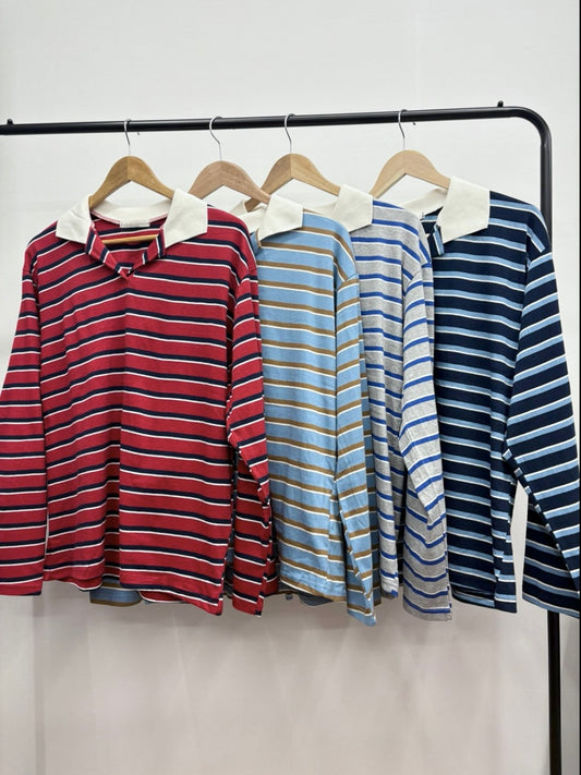 橫紋拼色間條翻領長袖tee|4色人定價 HK$128.00定價單價 每HK$148.00售價 HK$128.00特價