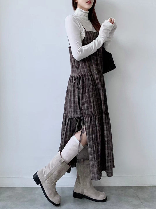 側分岔綁結格紋吊帶OPS🪵|2色入定價 HK$199.00定價單價 每HK$219.00售價 HK$199.00特價