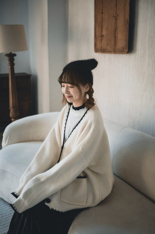 白色粗車線反領針織外套|2色入定價 HK$238.00定價單價 每HK$299.00售價 HK$238.00售罄