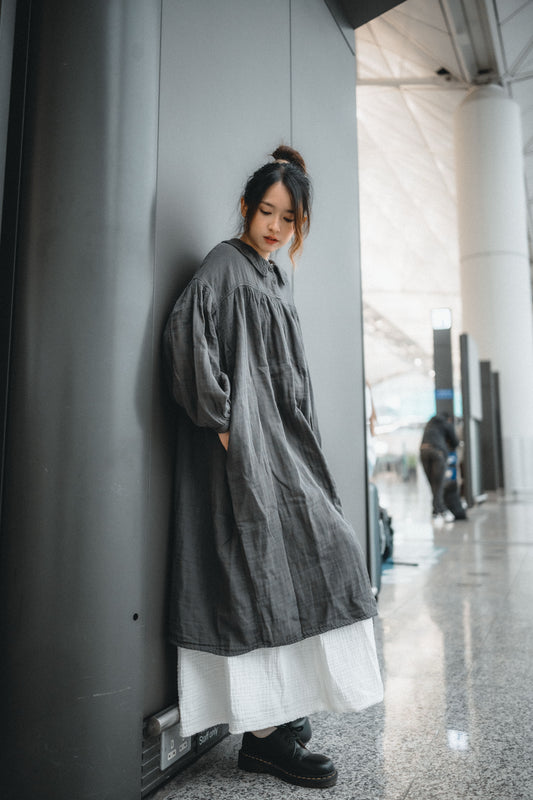 背綁帶壓格紋兩重Ruffle OPS|3色入