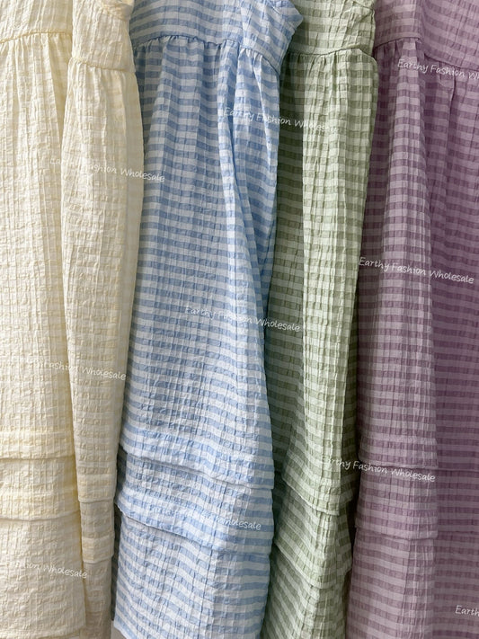 夏季色系🍬格子斜ruffle吊帶ops|3色入定價 HK$299.00定價單價 每-