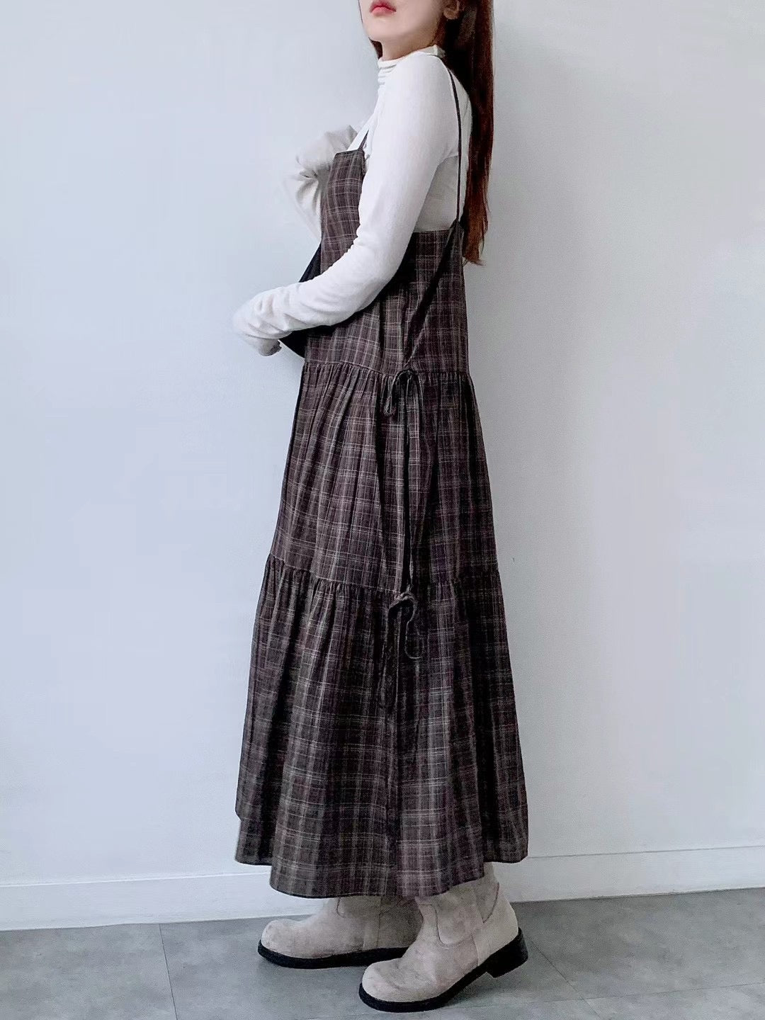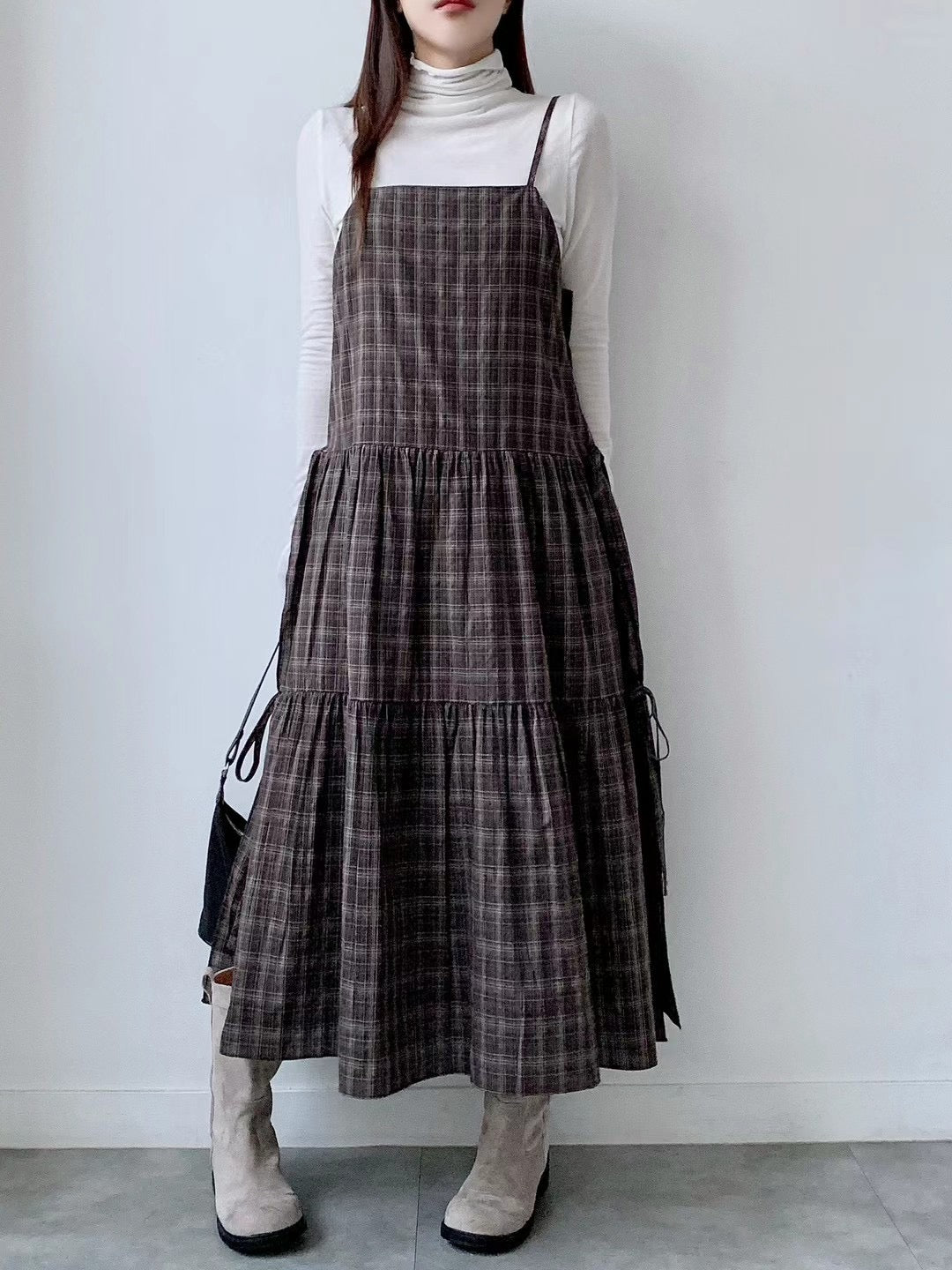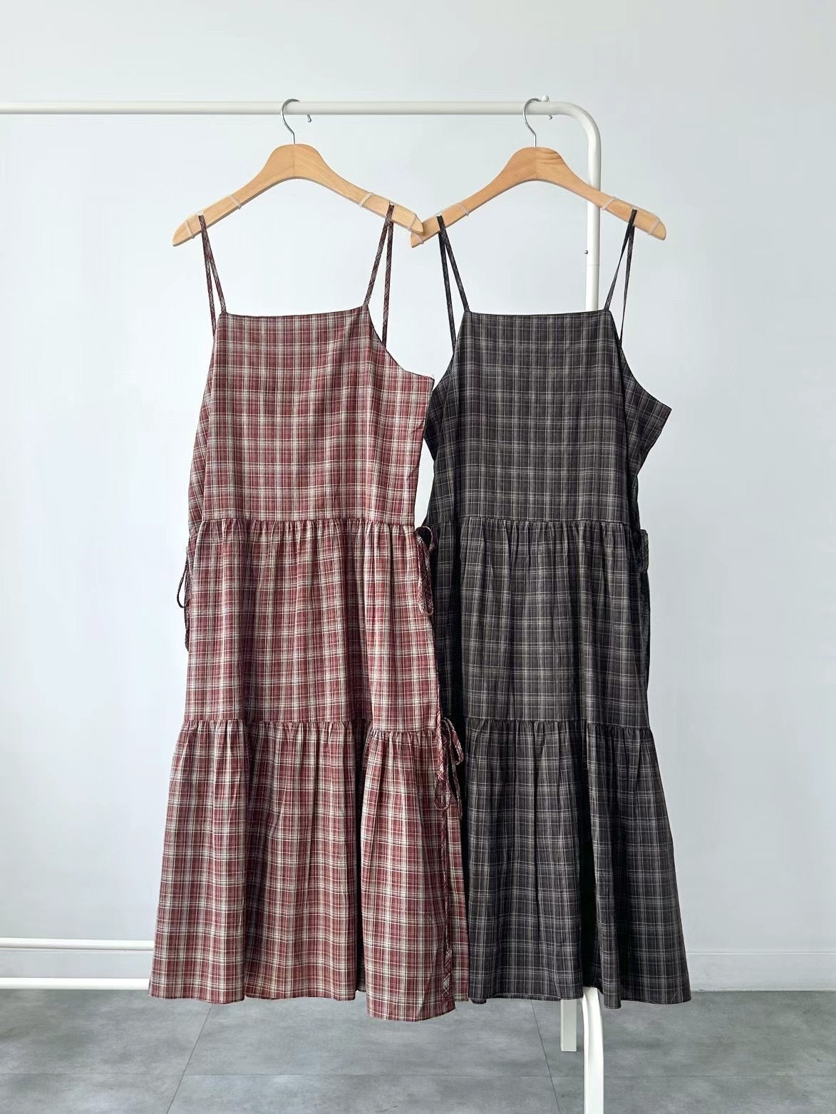 側分岔綁結格紋吊帶OPS🪵|2色入