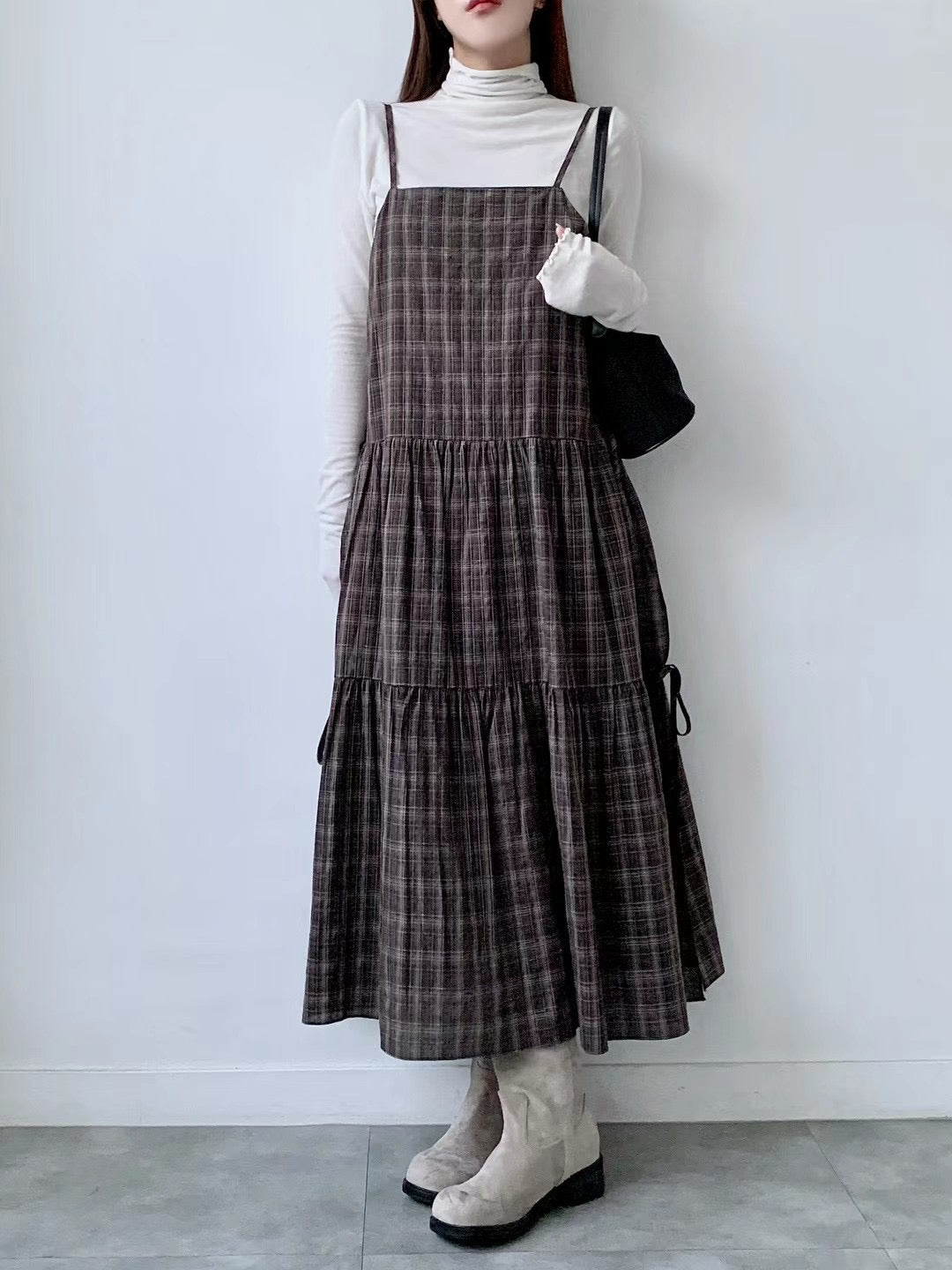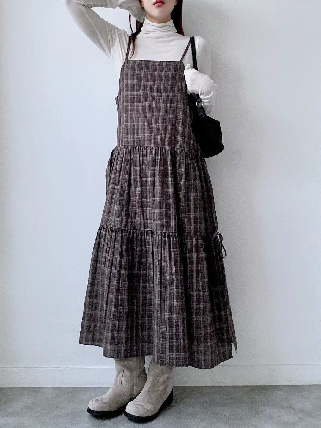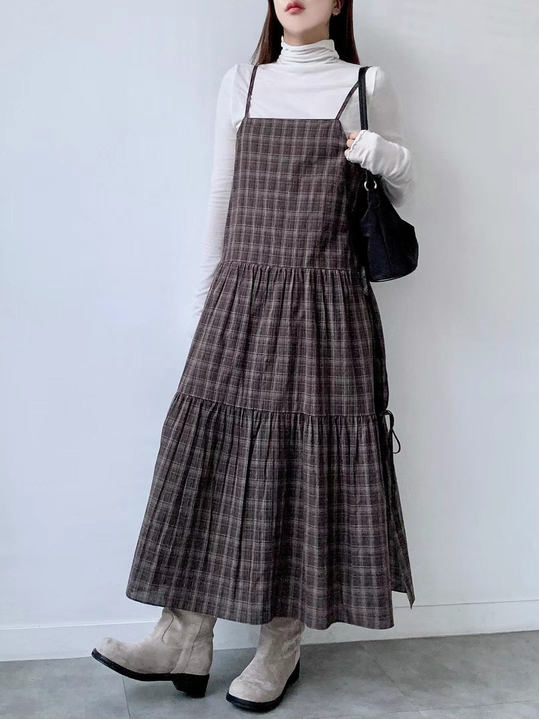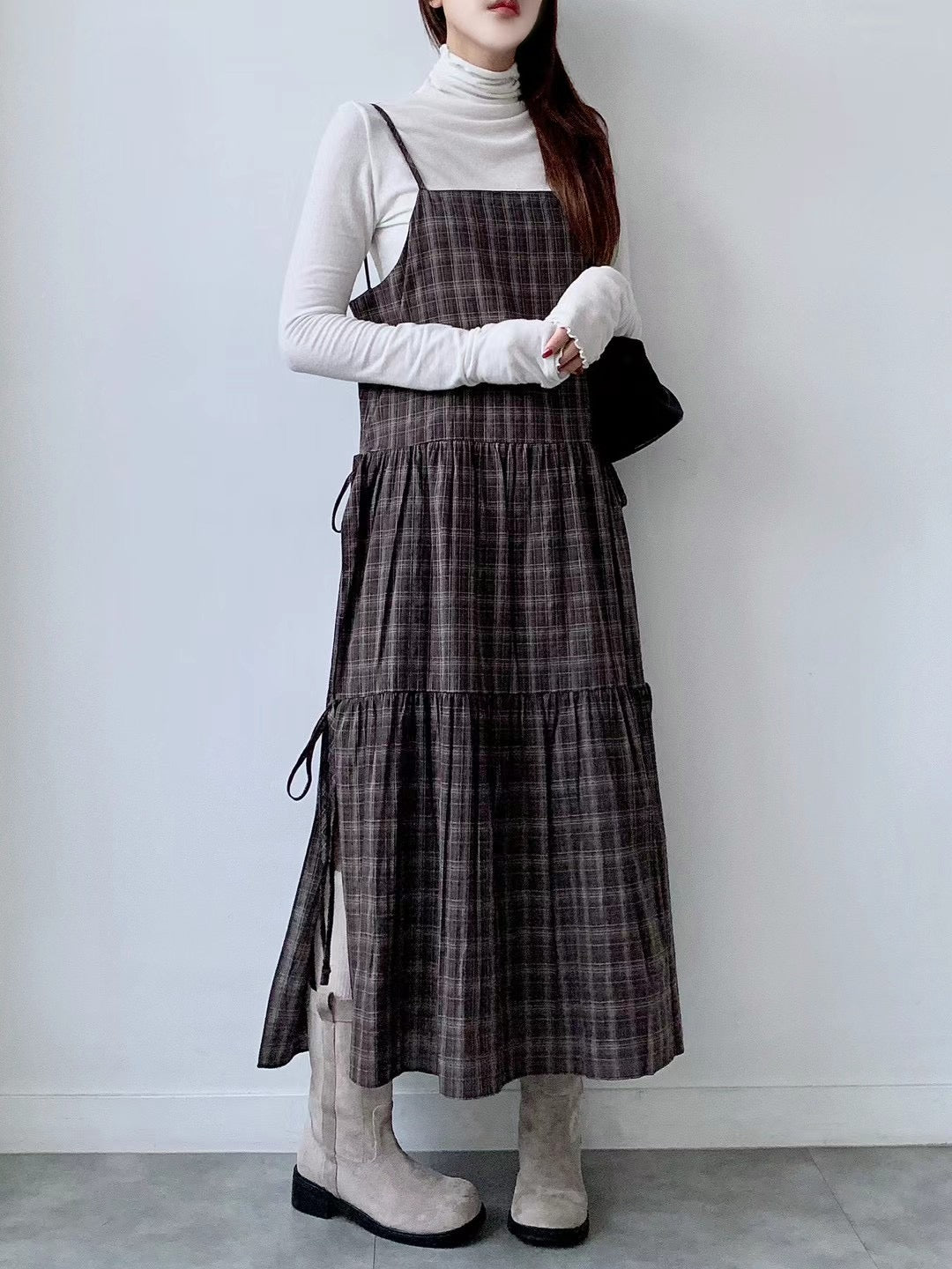 側分岔綁結格紋吊帶OPS🪵|2色入
