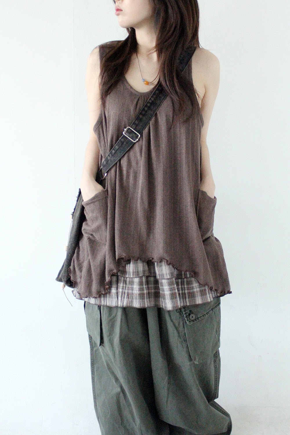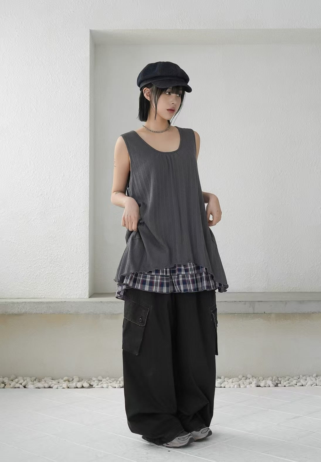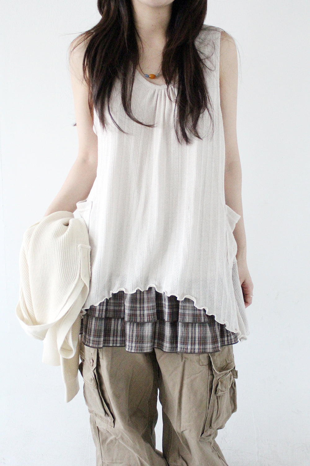 下襬位自帶格紋層疊layer設計!