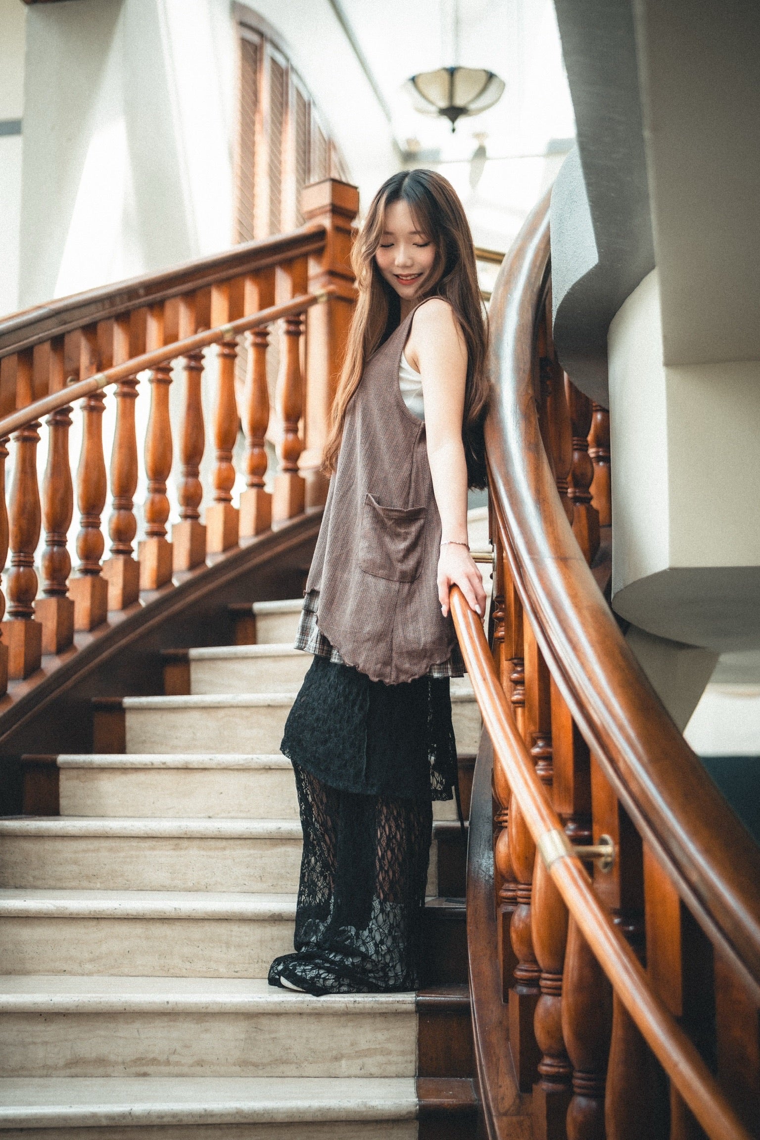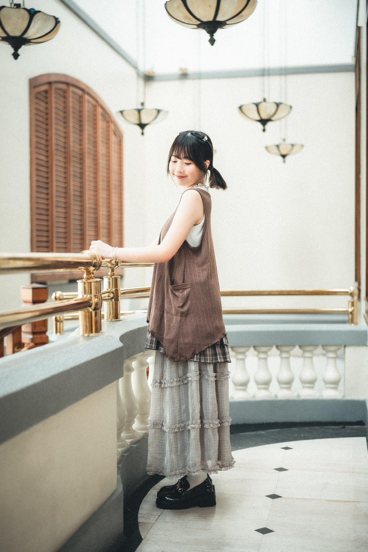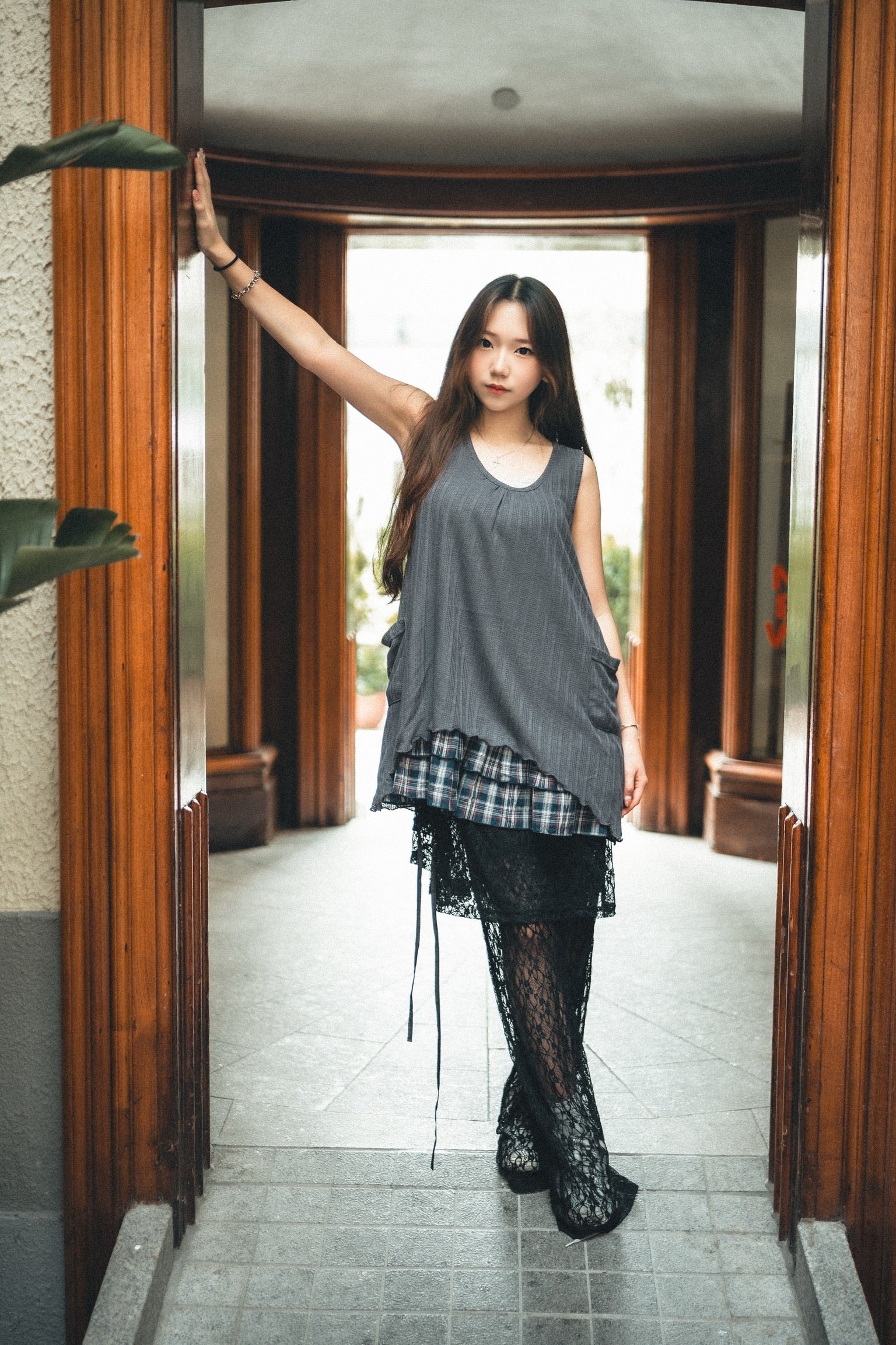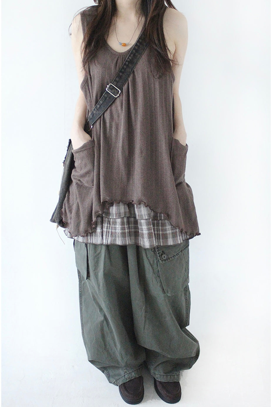 下襬位自帶格紋層疊layer設計!