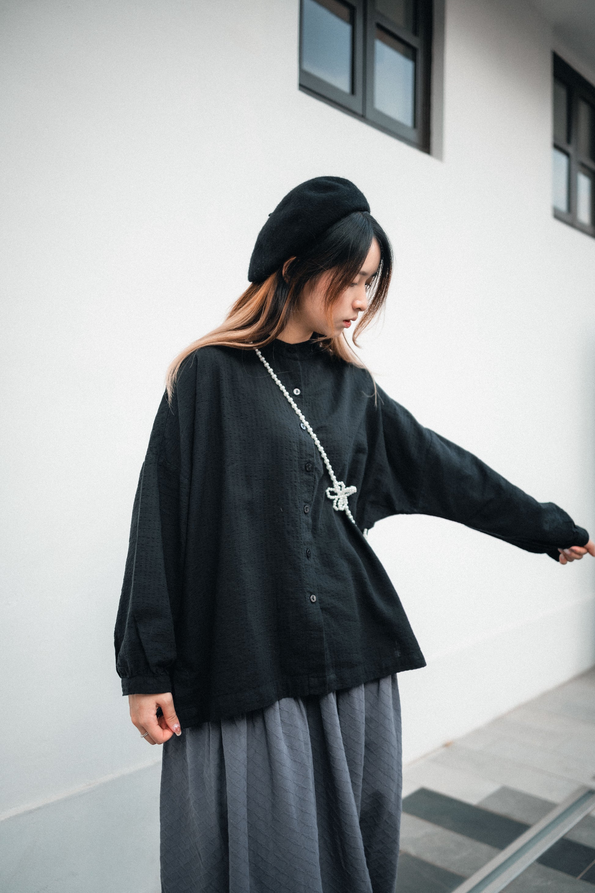 百搭易襯!圓領粒粒格紋襯衫|3色入