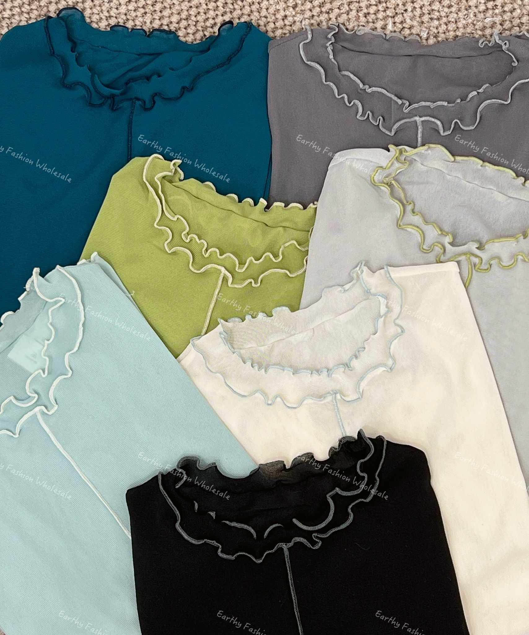 [最後現貨❕] 夏日☀️透膚明線撞色RUFFLE TOP|7色入