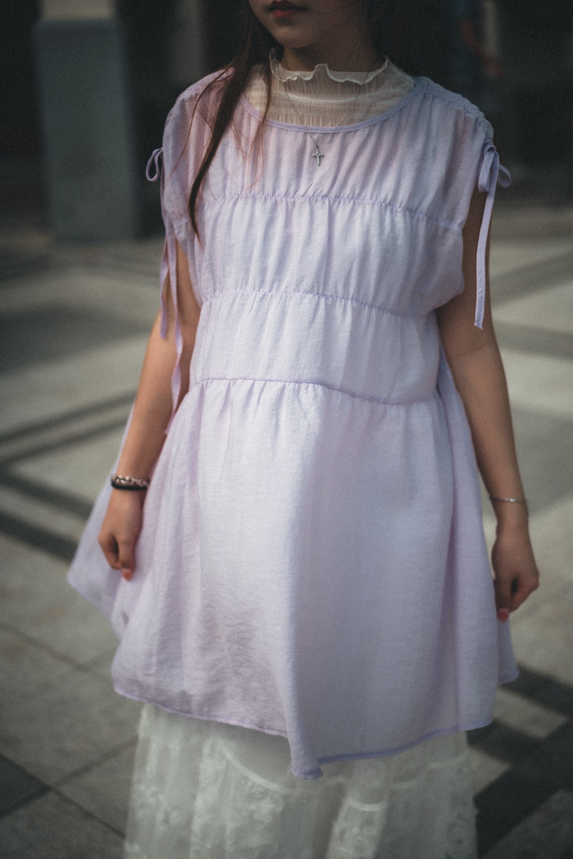 肩位抽繩設計 可索蝴蝶結做點綴(⑅◍∩ω∩)