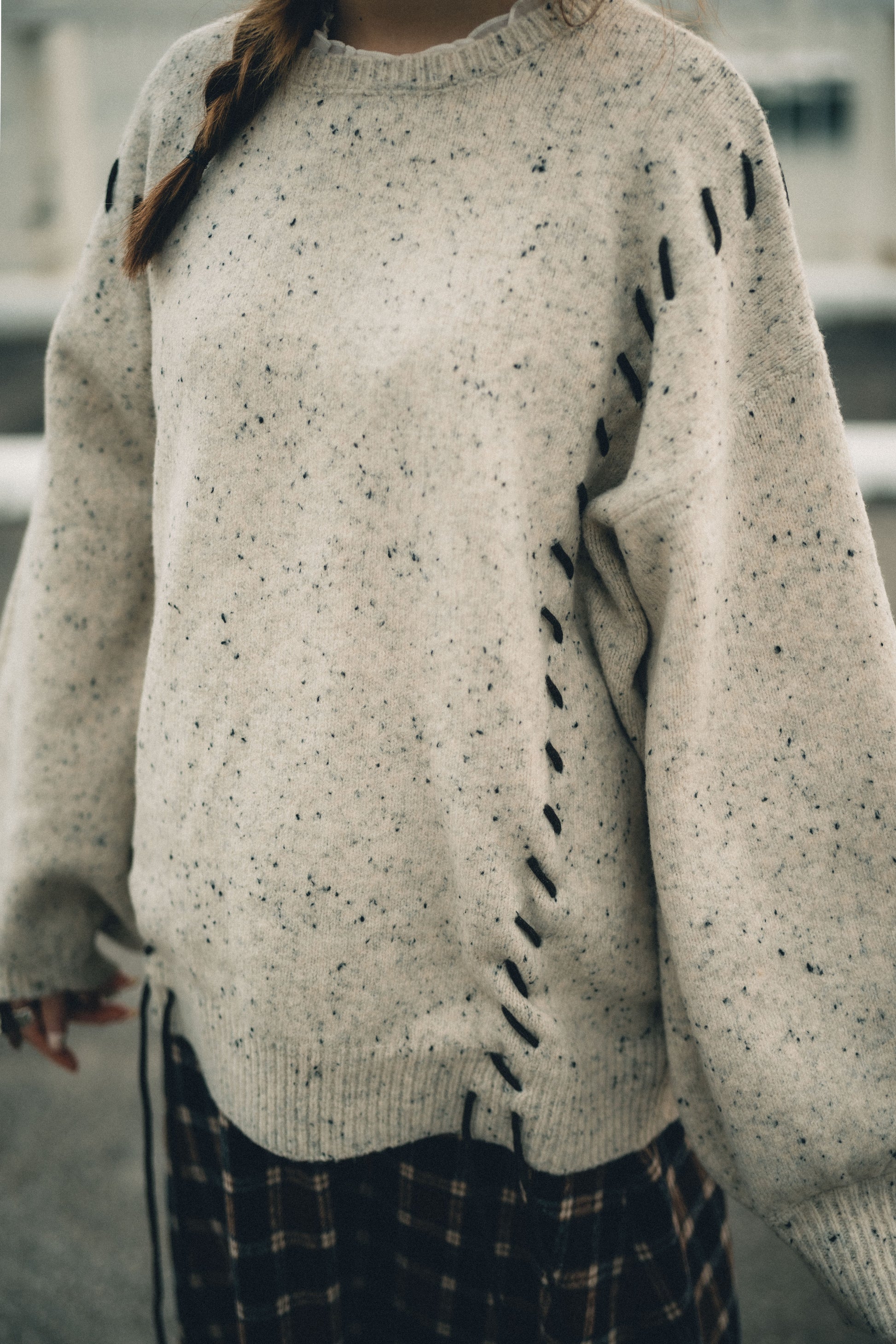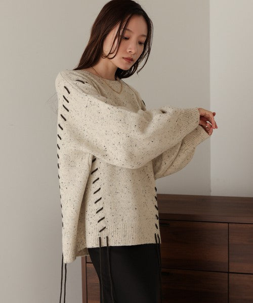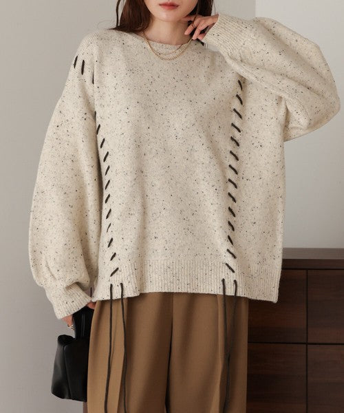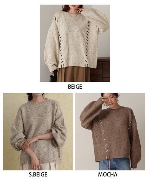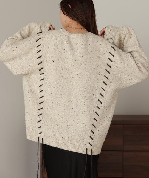 曲奇趣趣🍪 拼色粗縫繫帶針織上衣|3色入