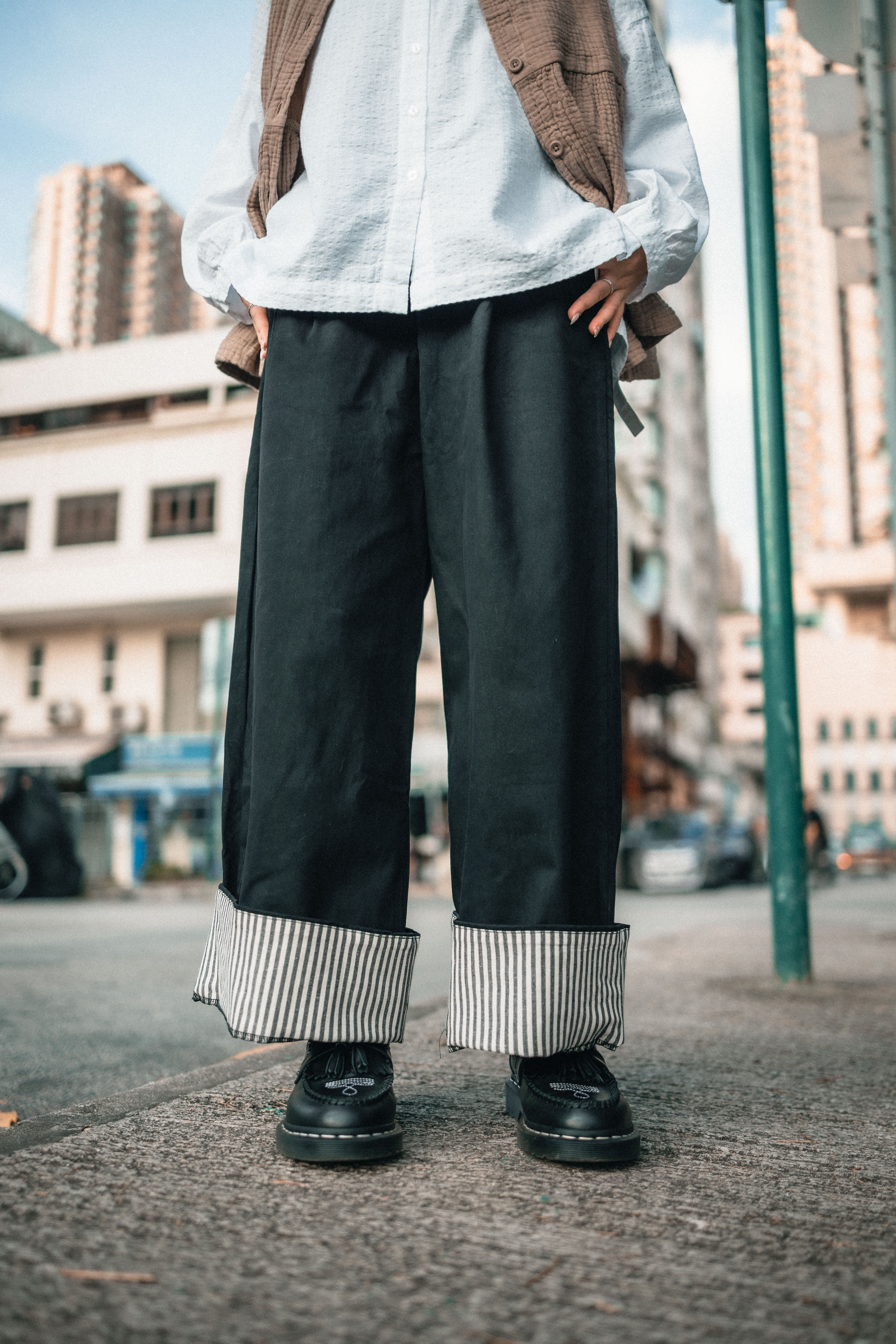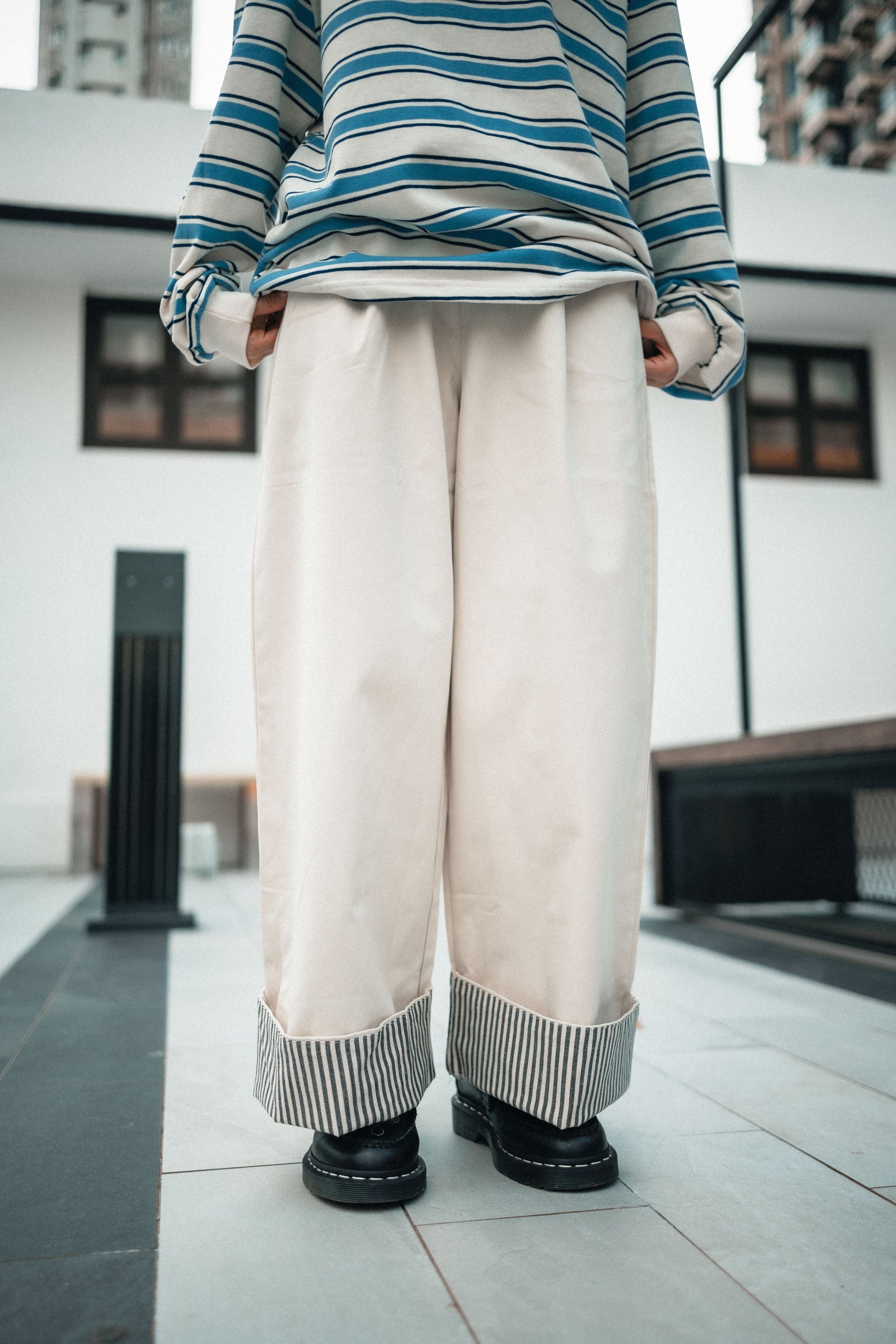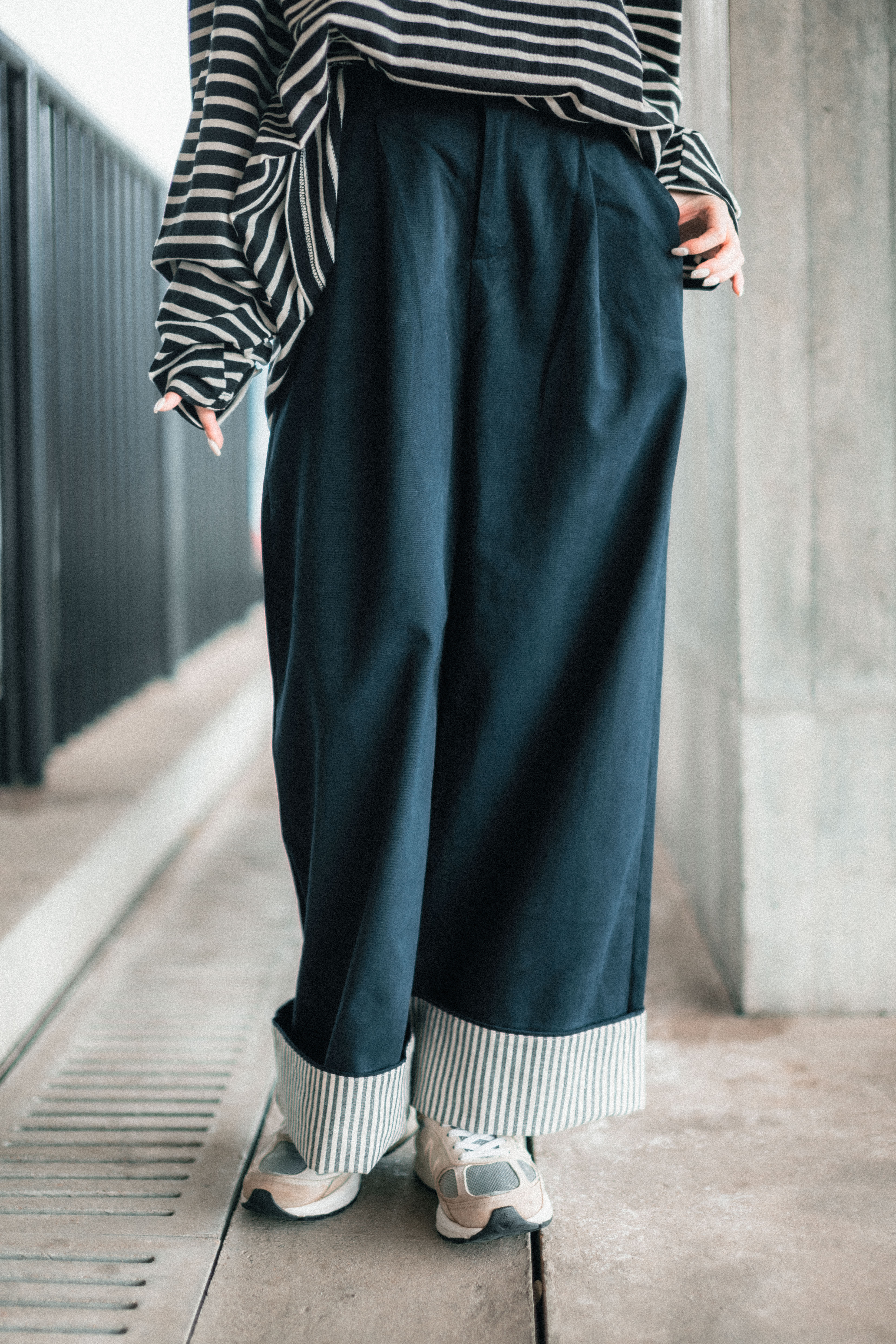 卷起褲腳 內有直條紋布 |||| Surprise!!!