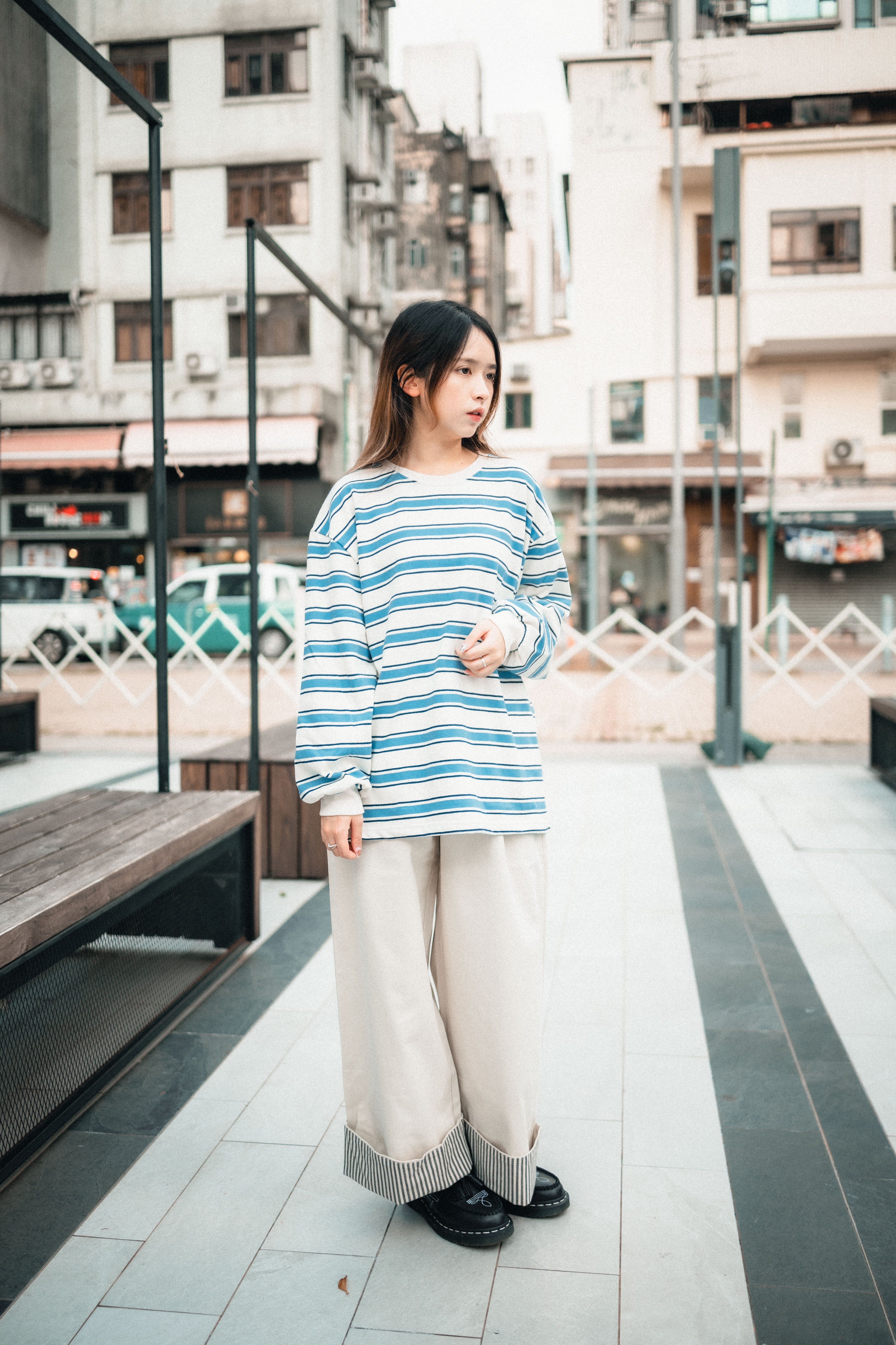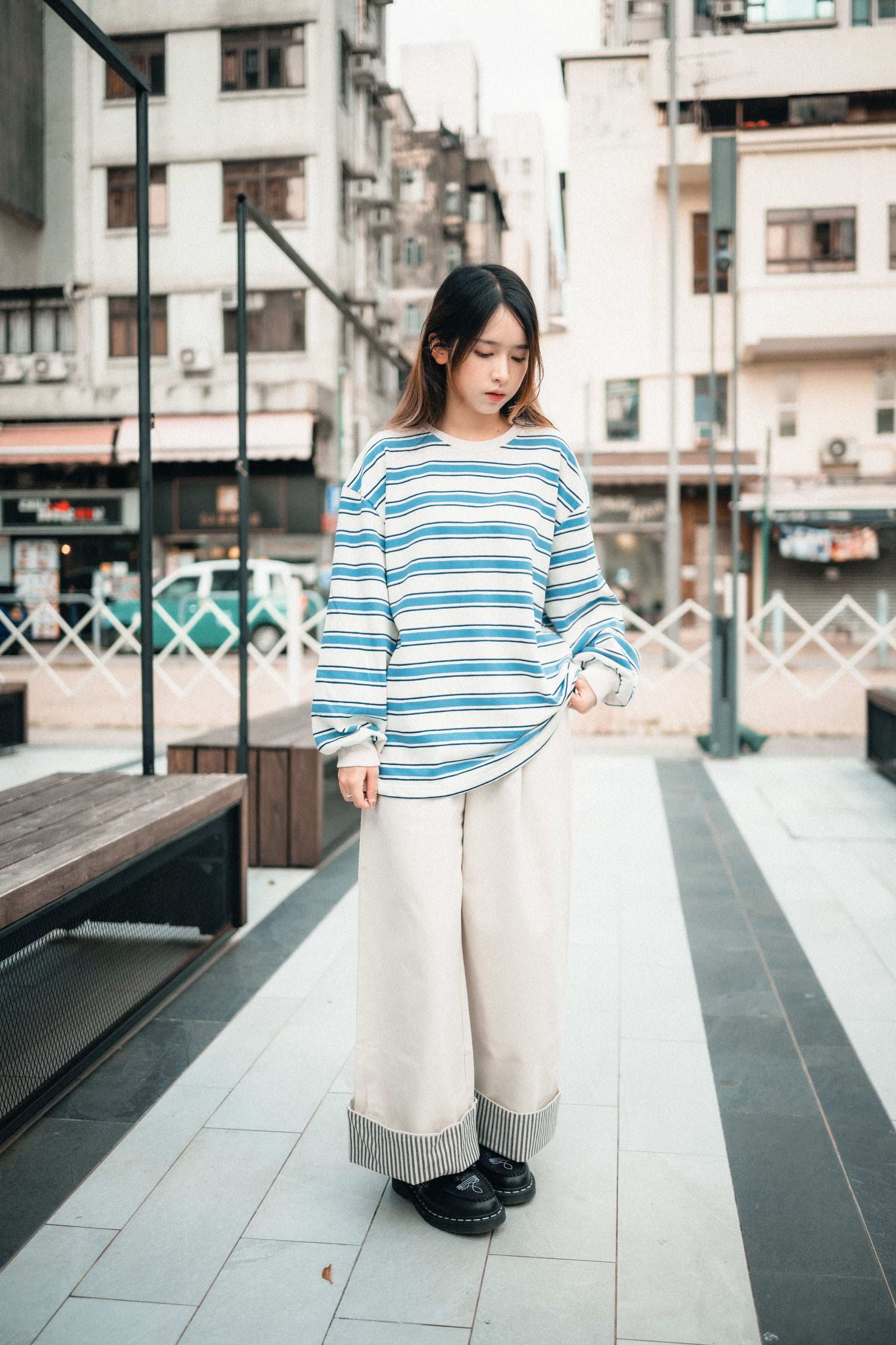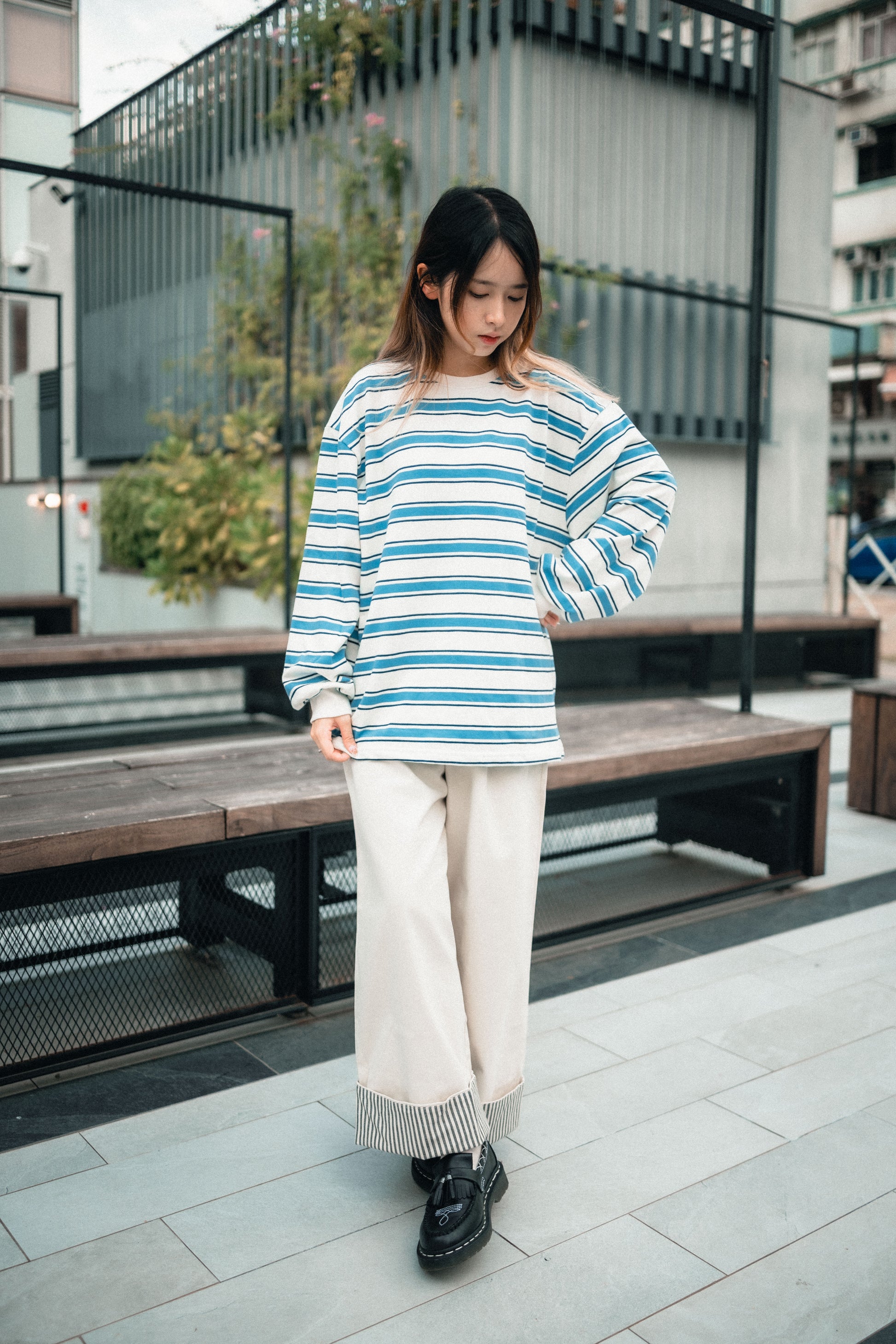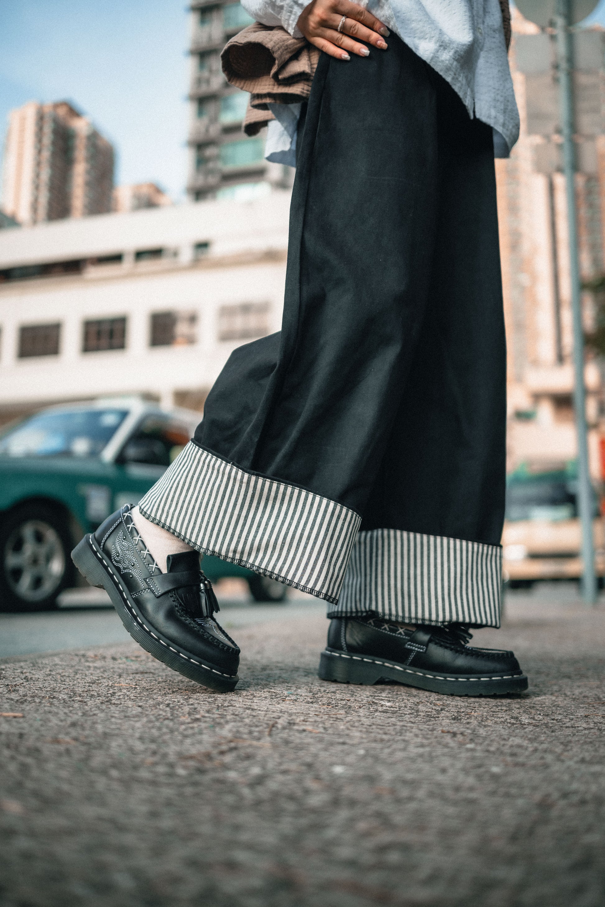 卷起褲腳 內有直條紋布 |||| Surprise!!!