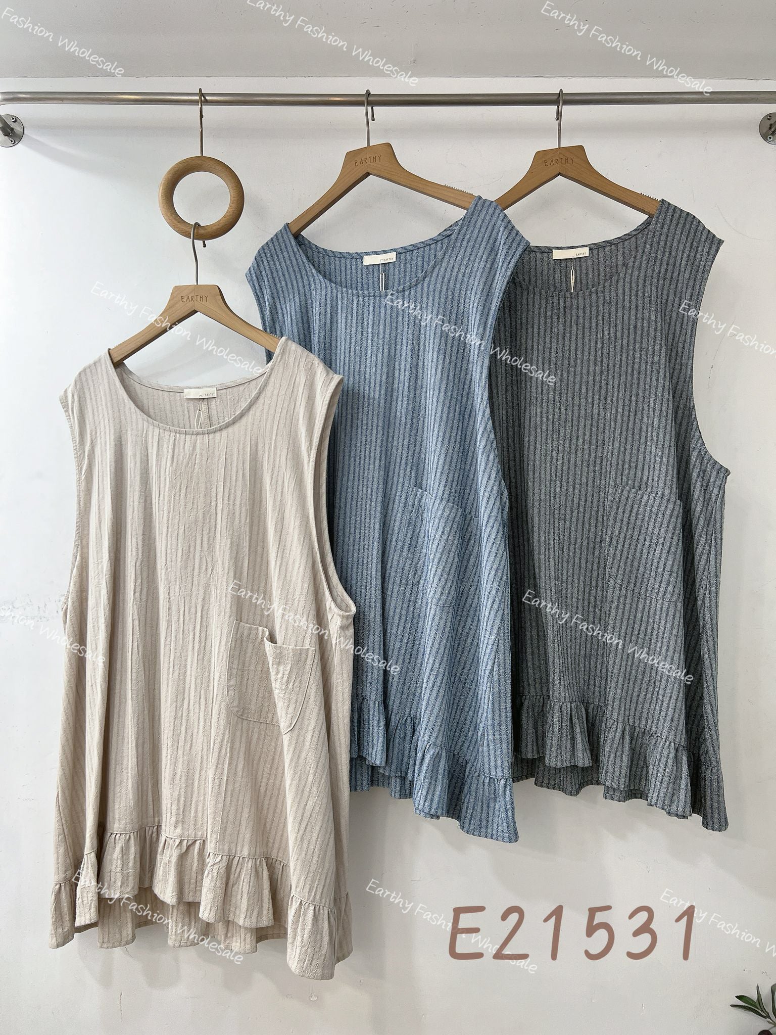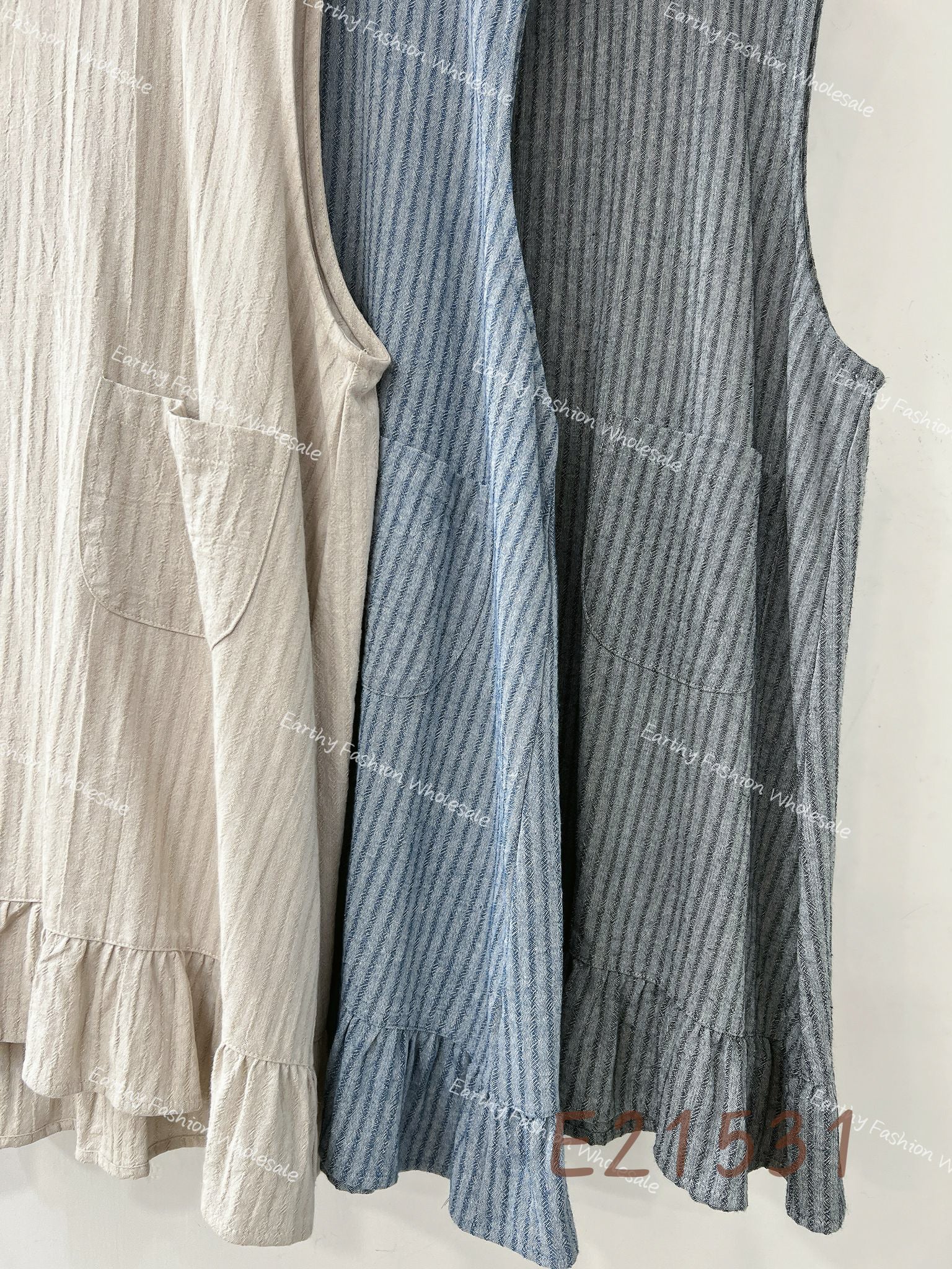 文青風👩🏻🎨 棉麻直紋明袋Ruffle背心外搭|3色入