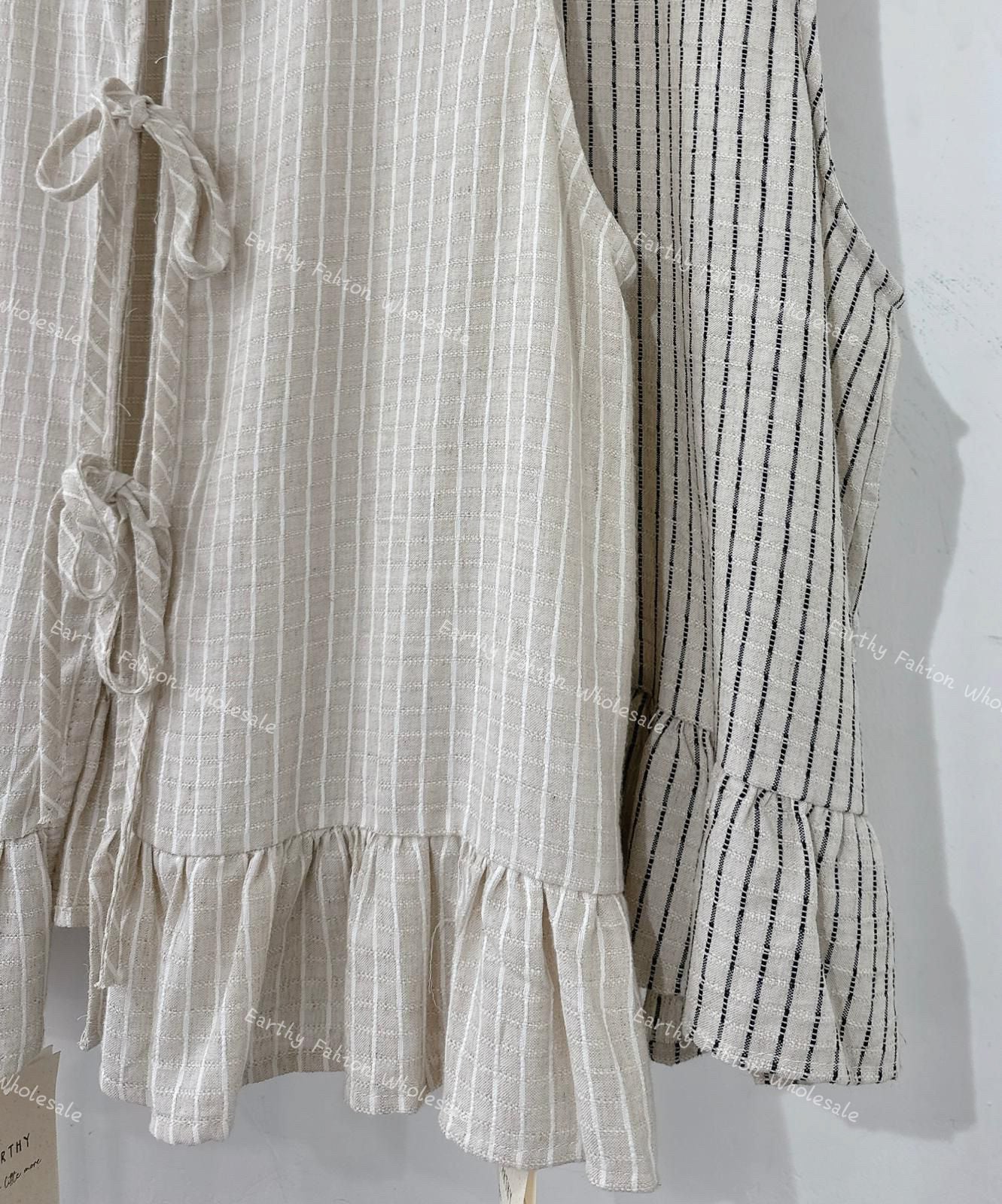 無印風 · 麻質2WAY直紋綁帶背心外搭|2色入