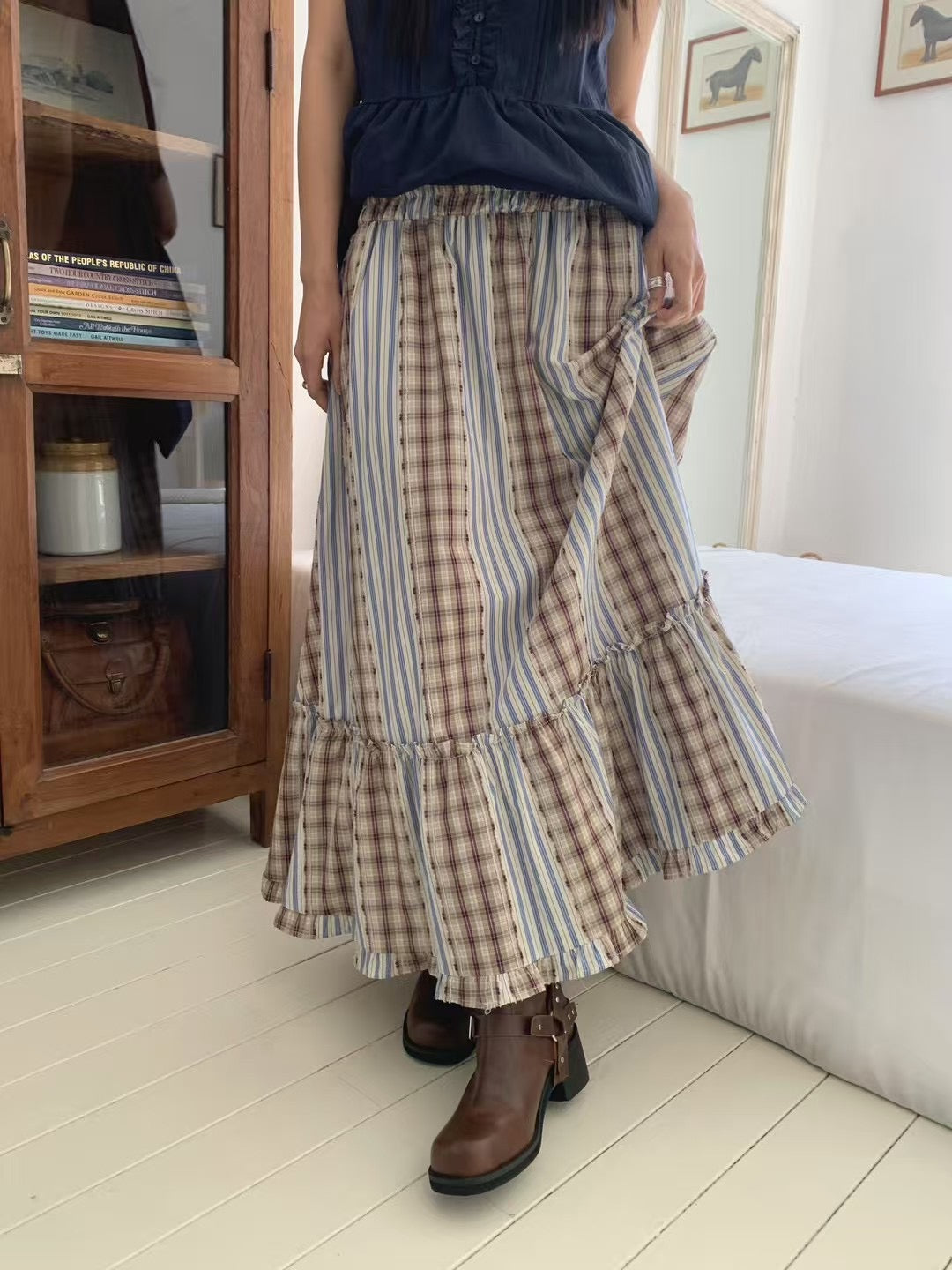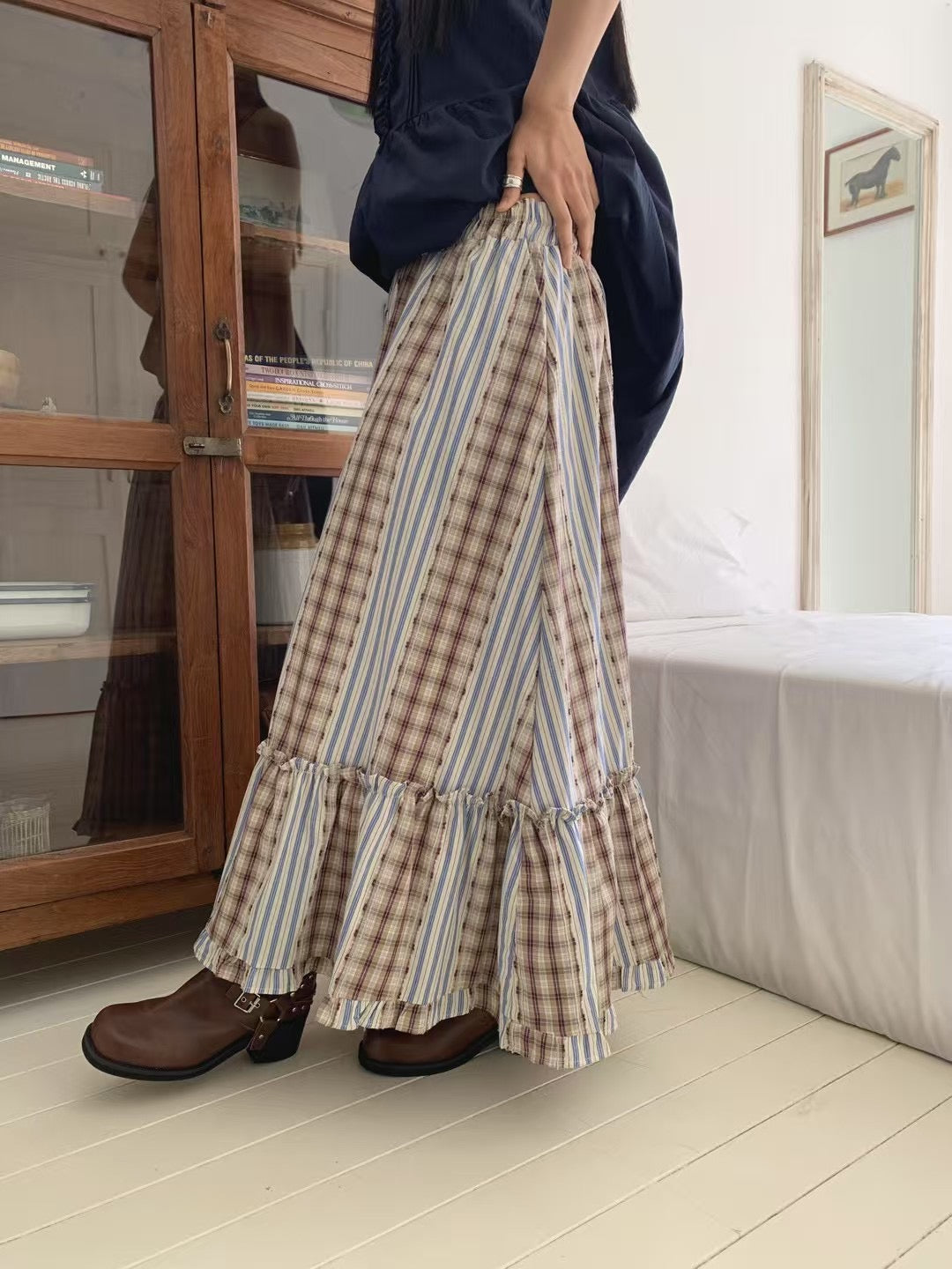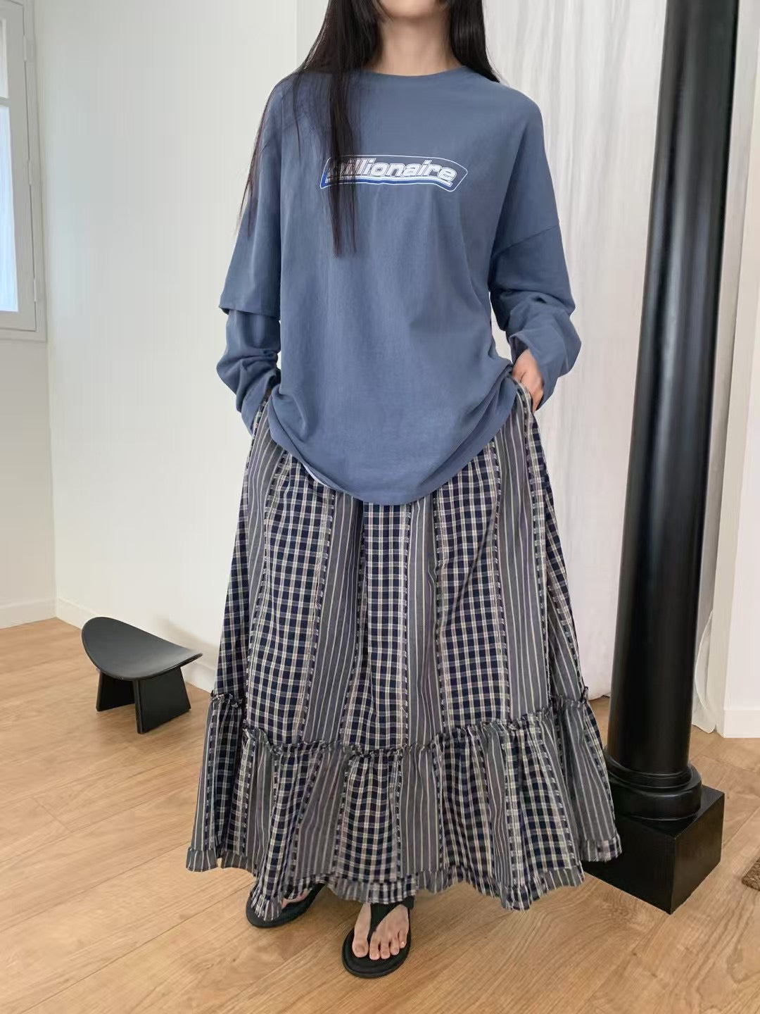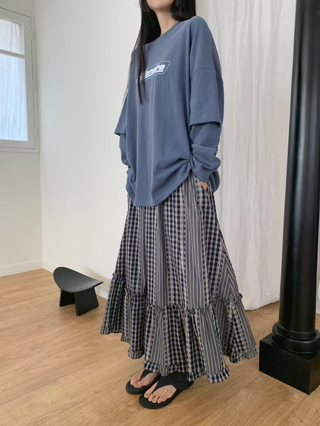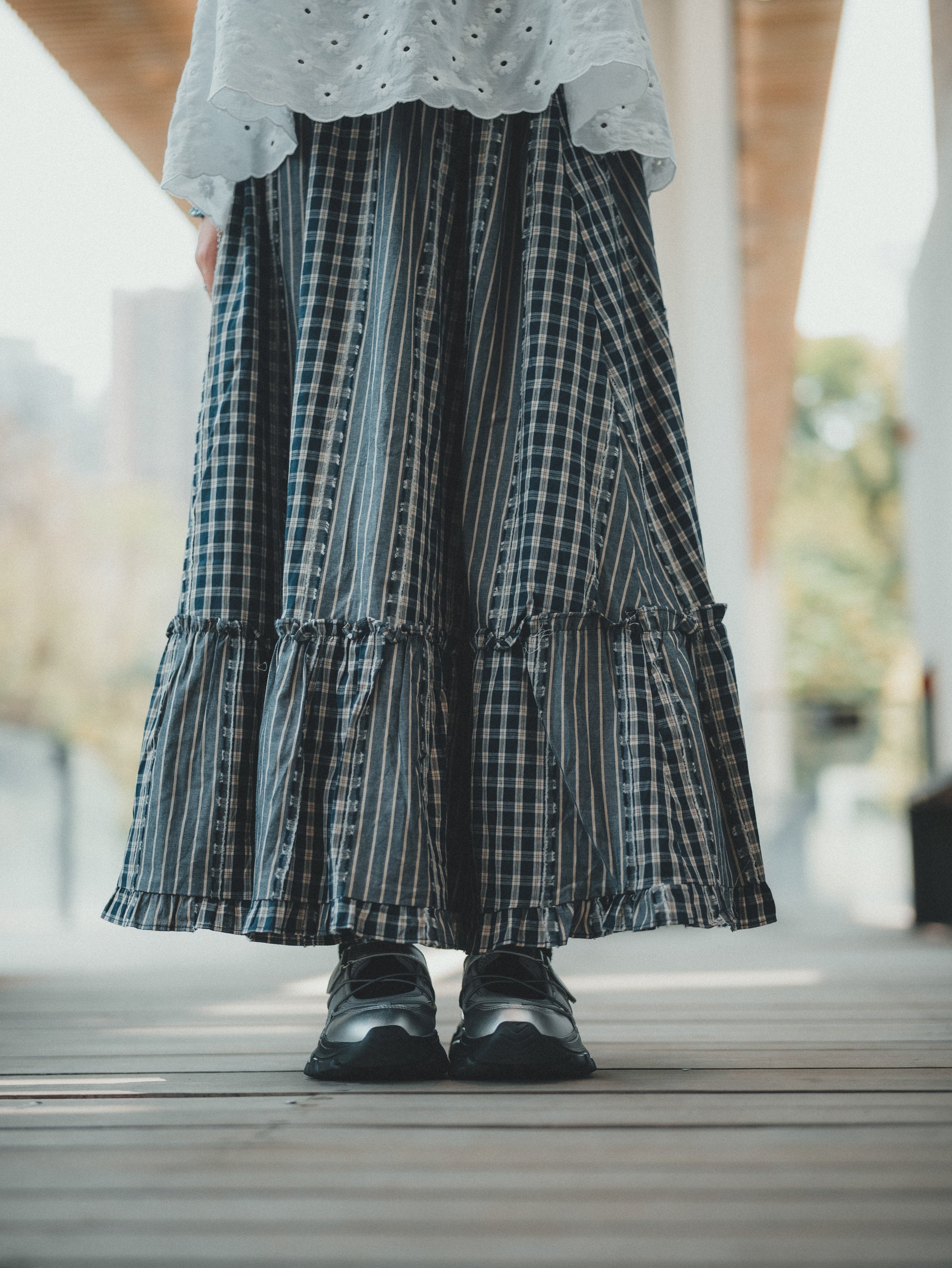直筒微A字cut 遮胯寬 裙身小腿以上位置有一層小ruffle