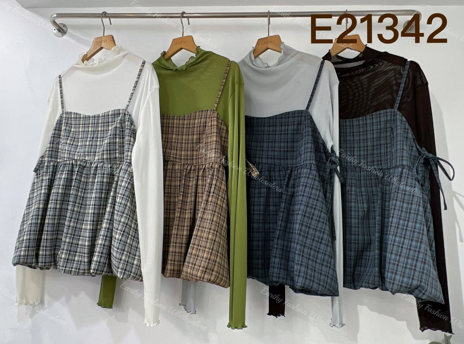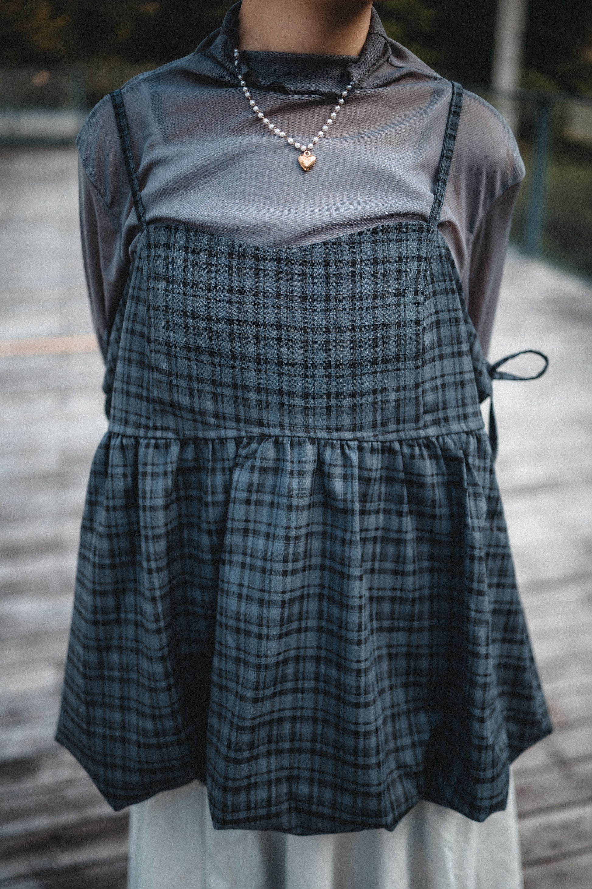 秋冬格紋🪟側綁帶泡泡背心外搭|4色入