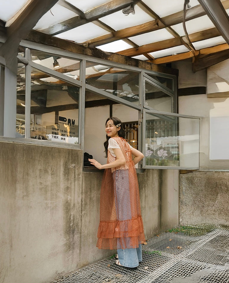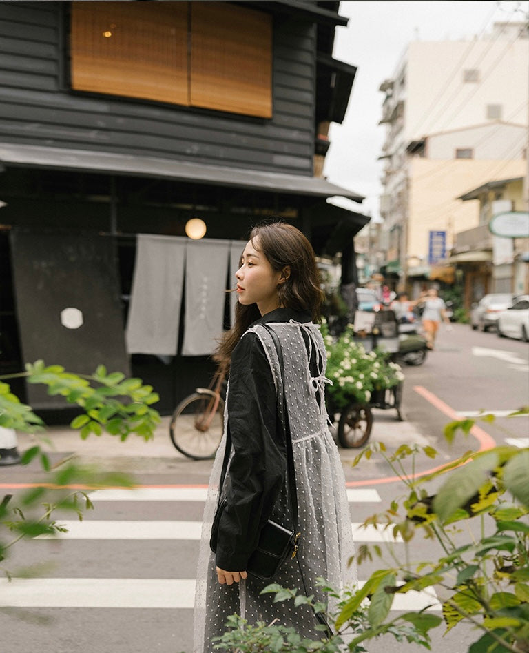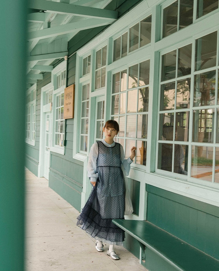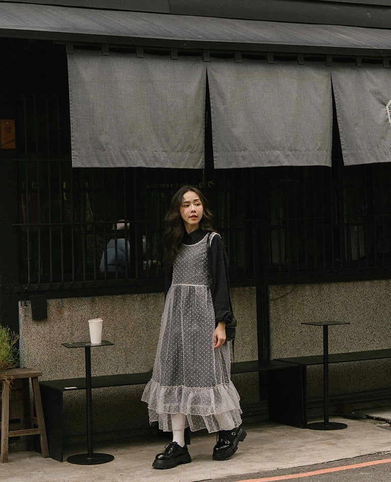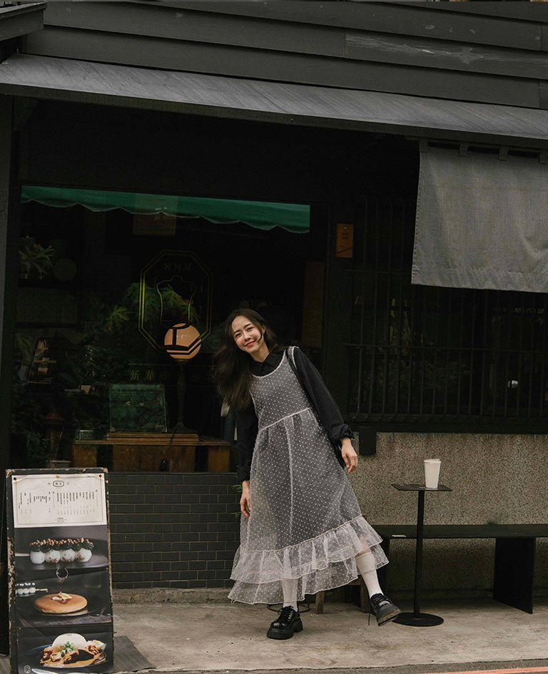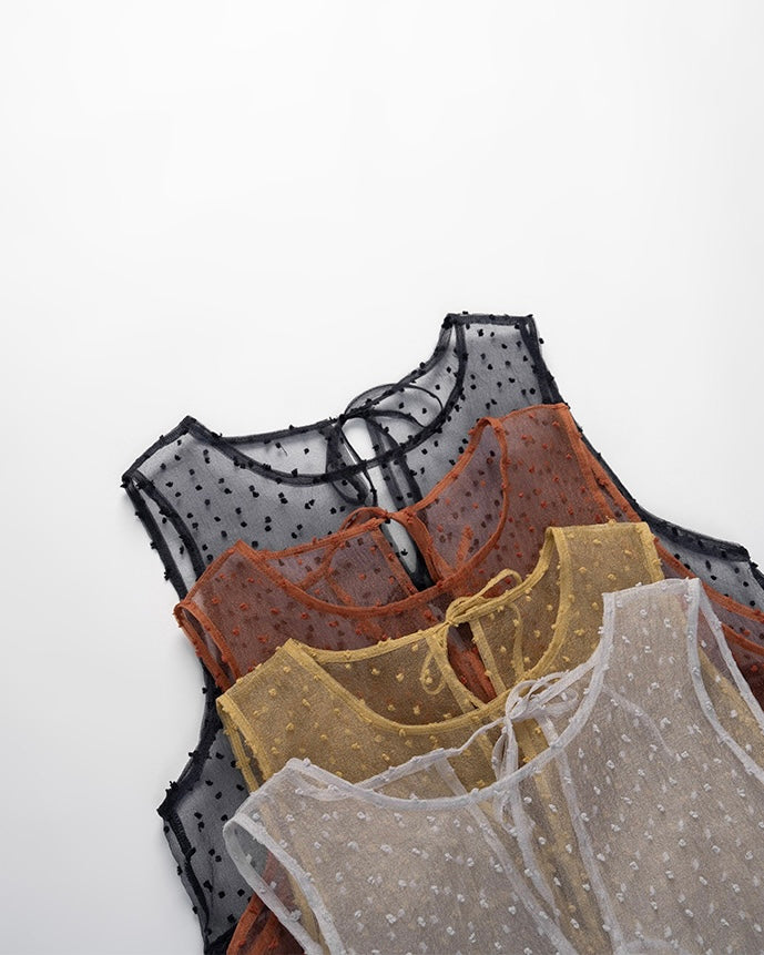 立體點點蛋糕下擺透膚綁帶罩衫|4色入