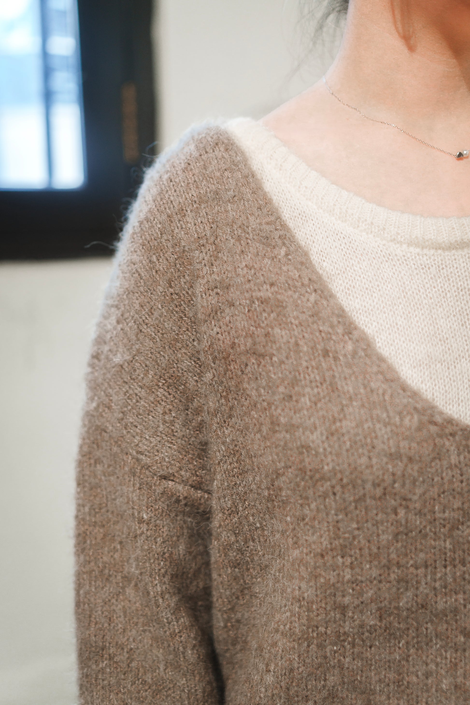 綿綿大V領連圓領背心針織兩件套 | 2 colors