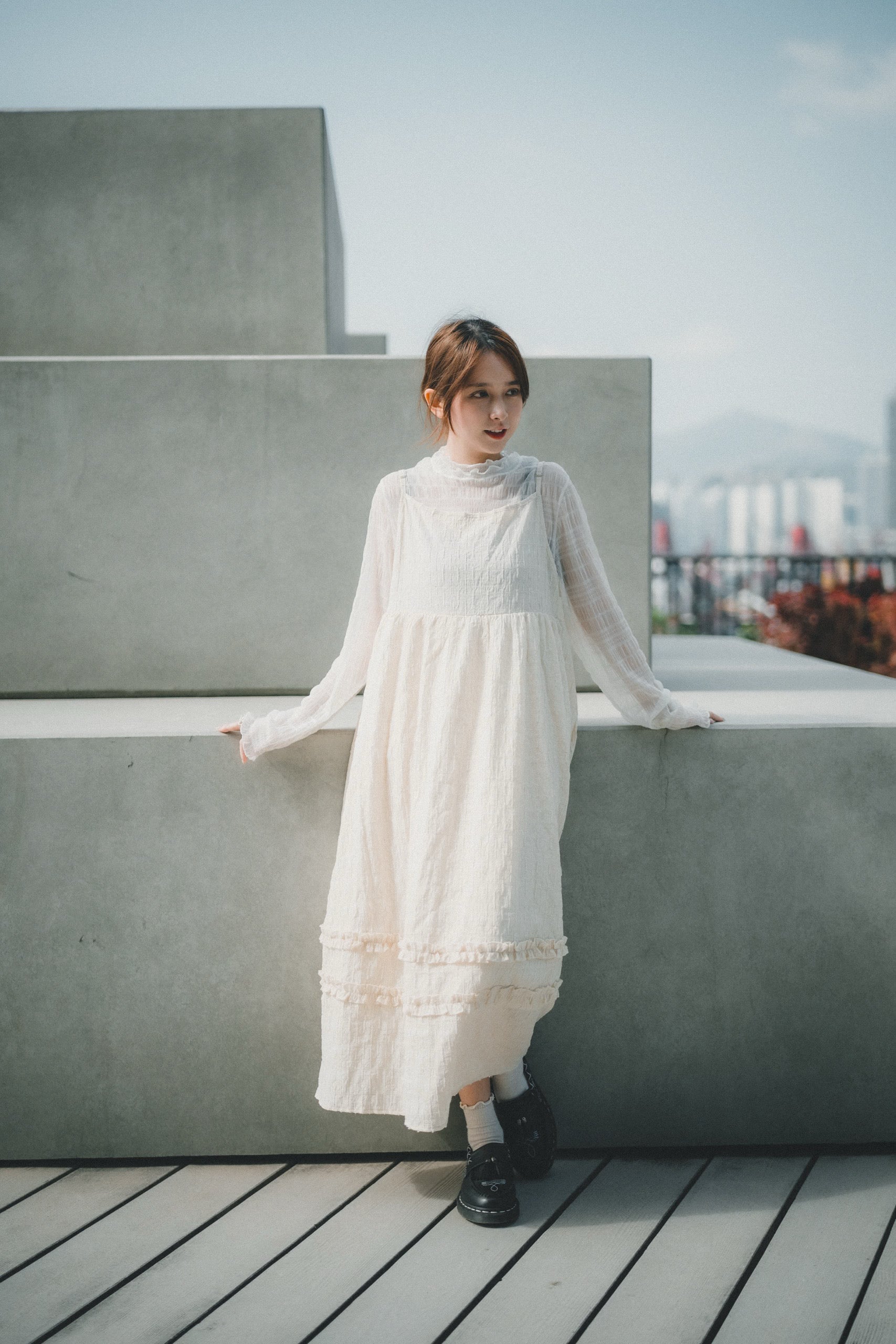 背綁帶壓格紋兩重Ruffle OPS|3色入