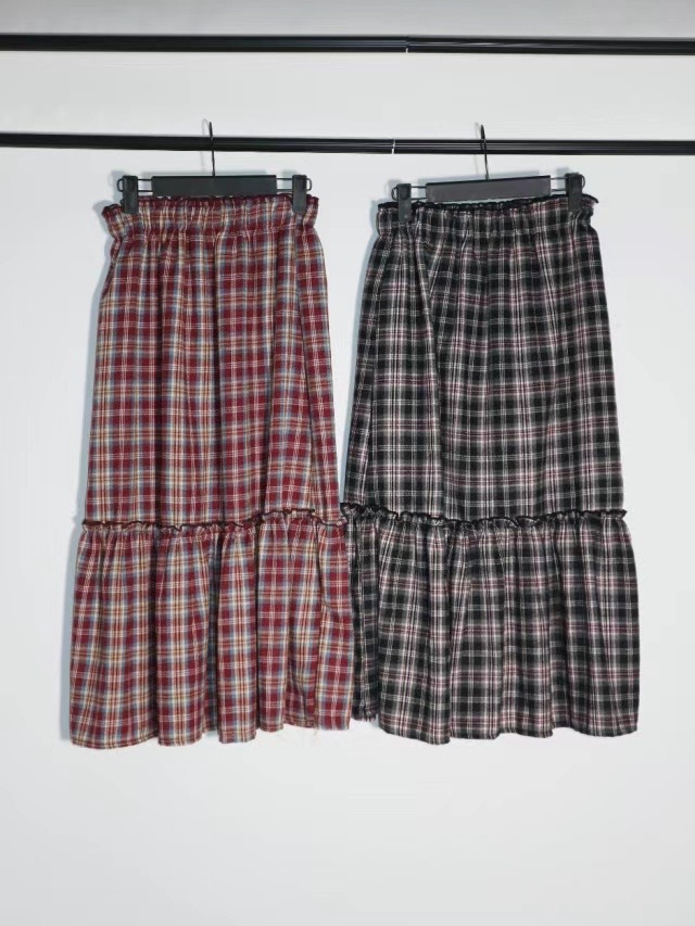 黑色底拼紅色格線 經典英倫風配色的半身長裙!