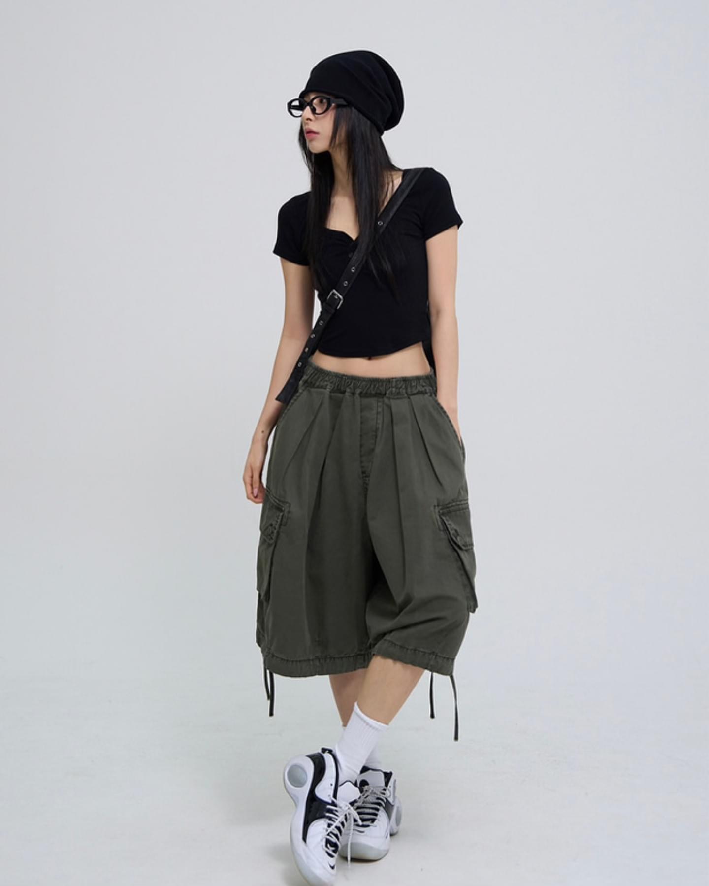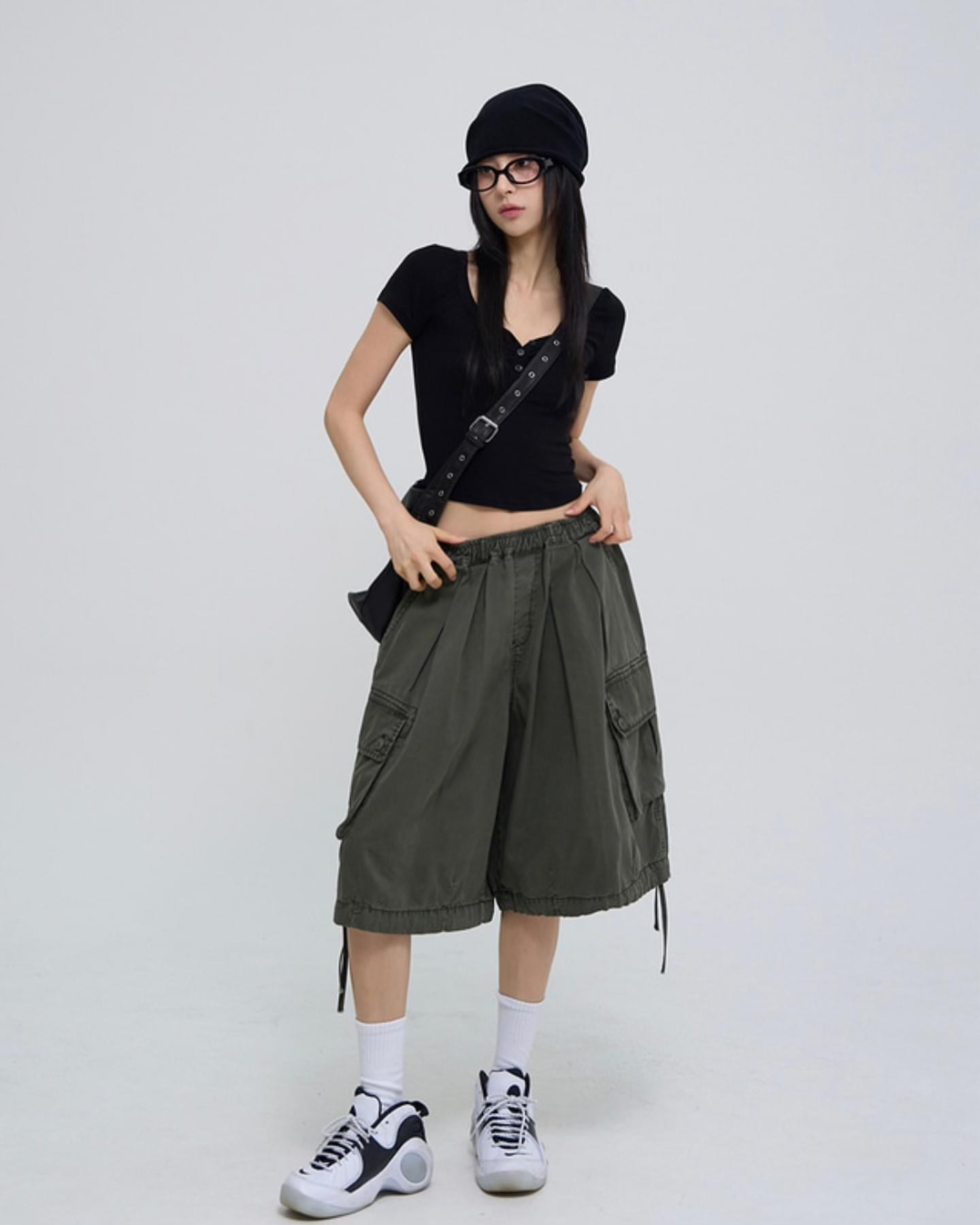 超靚褲形!霧灰洗水感五分工裝褲|4色入