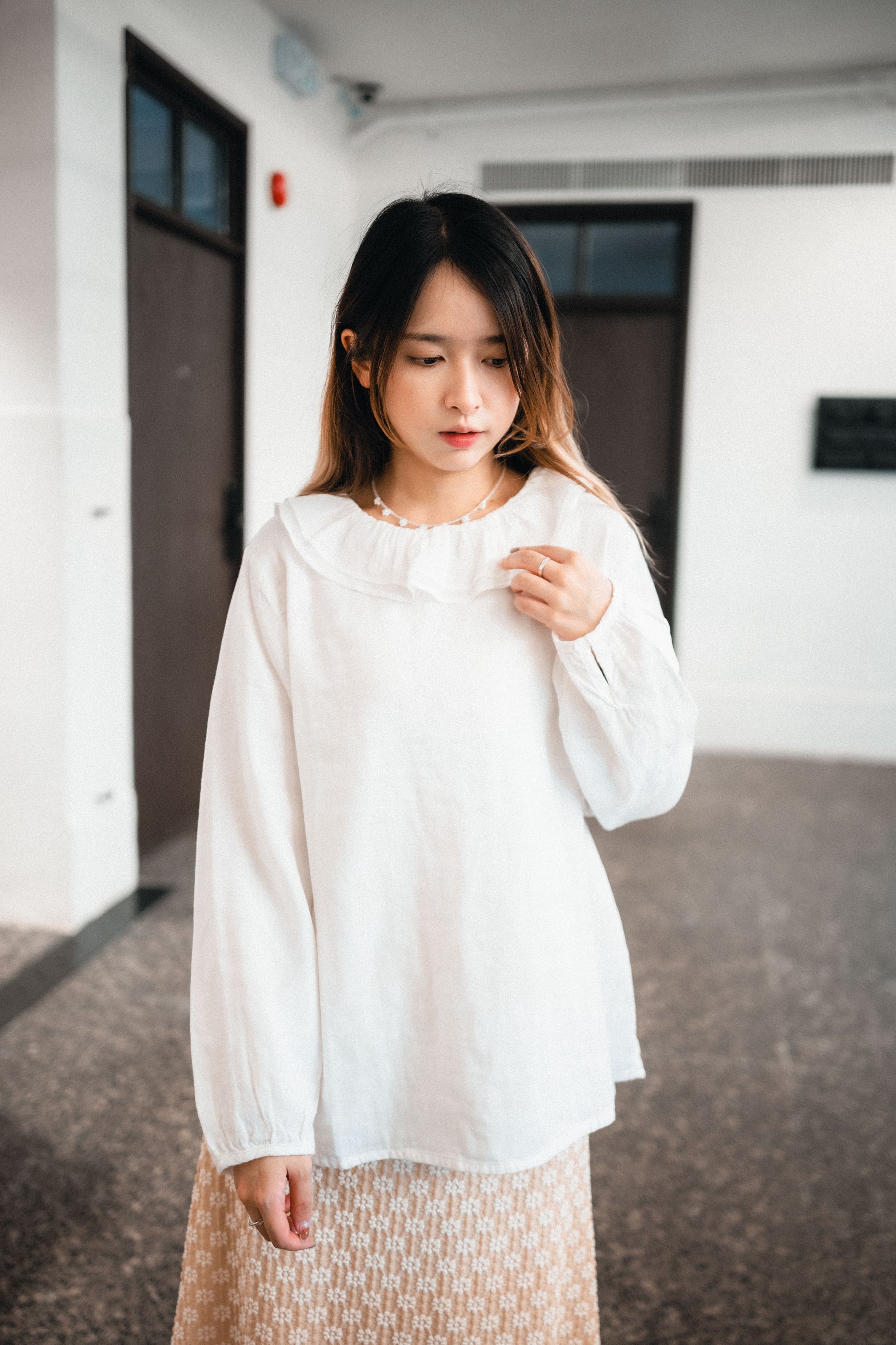 超靚嘅日系花邊領🌼 而且特別少少 係圓領的!