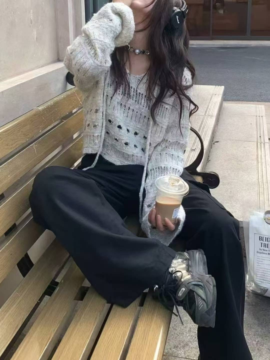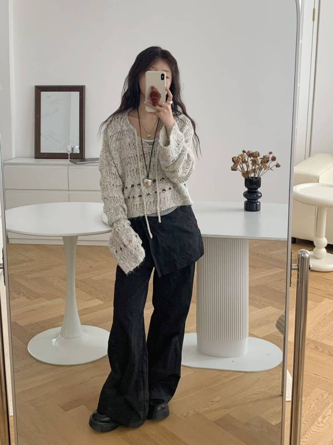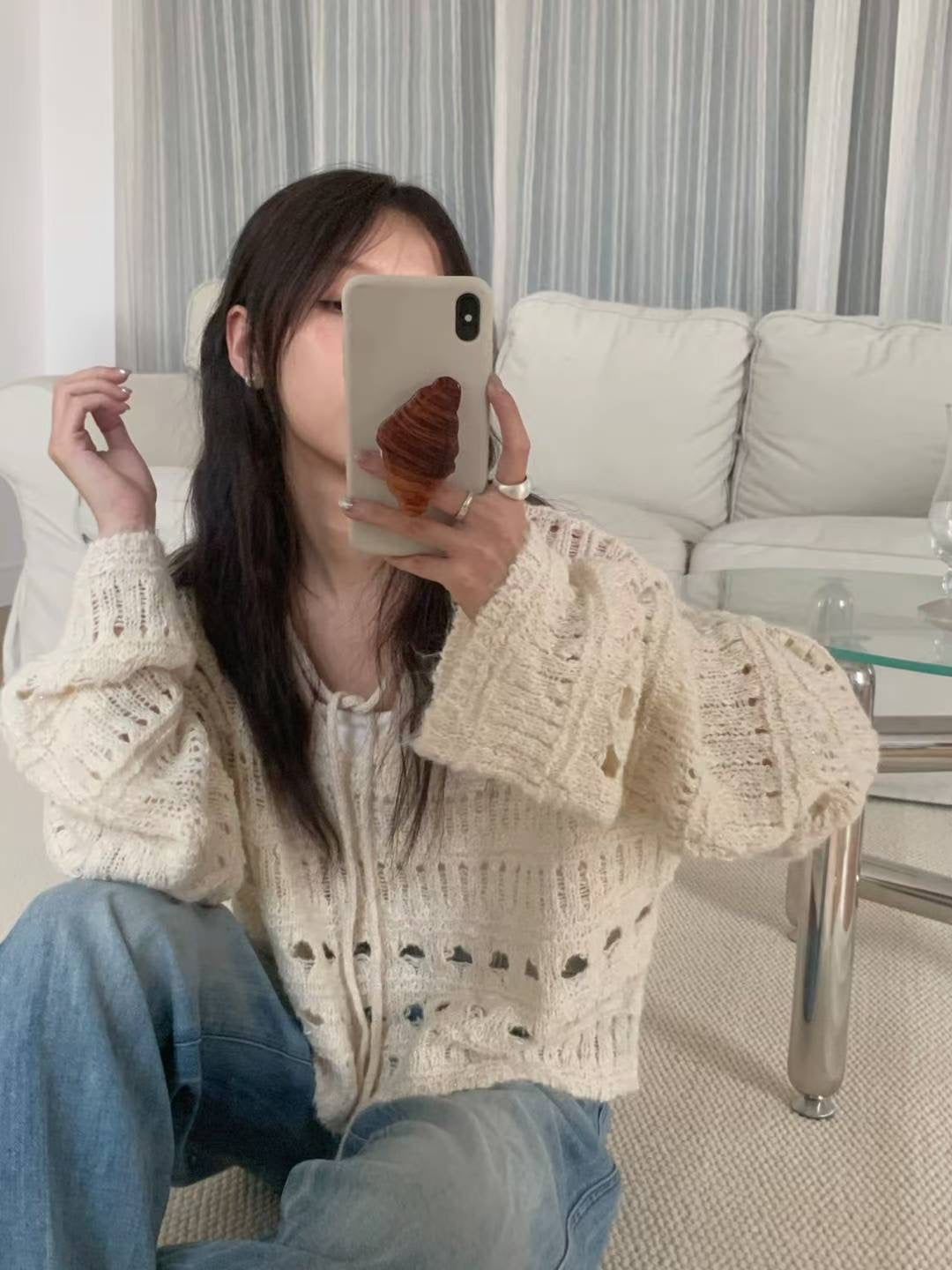 韓系溫柔鏤花綁繩針織上衣|2色入