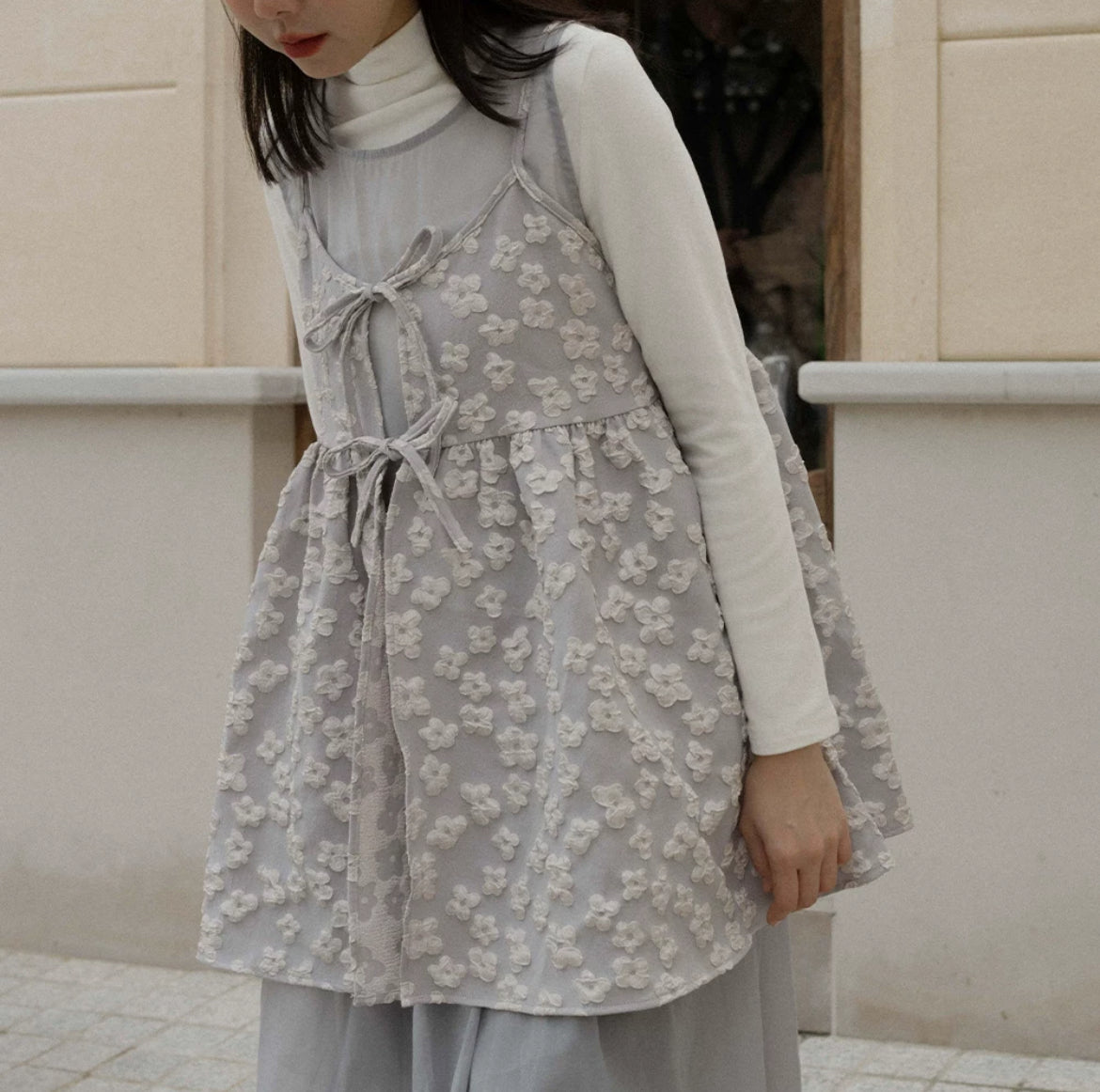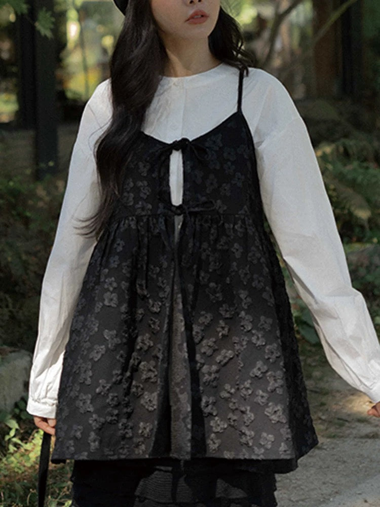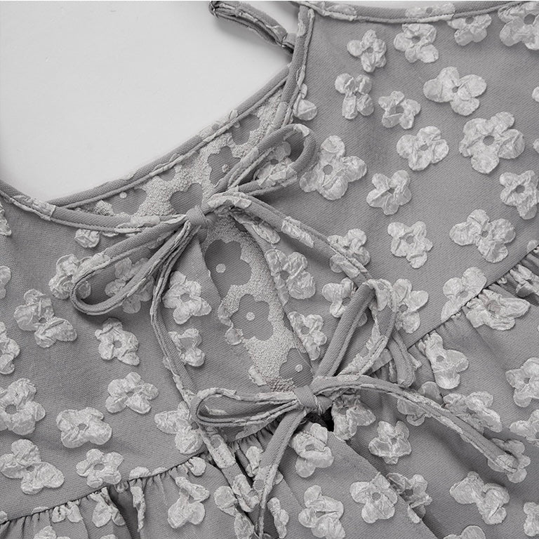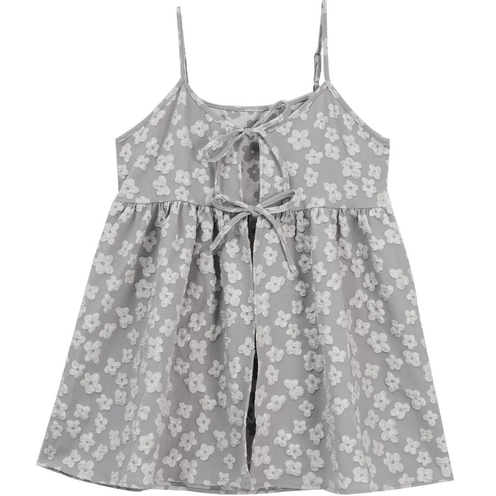 光澤花朵緹花綁帶設計單衫🌼