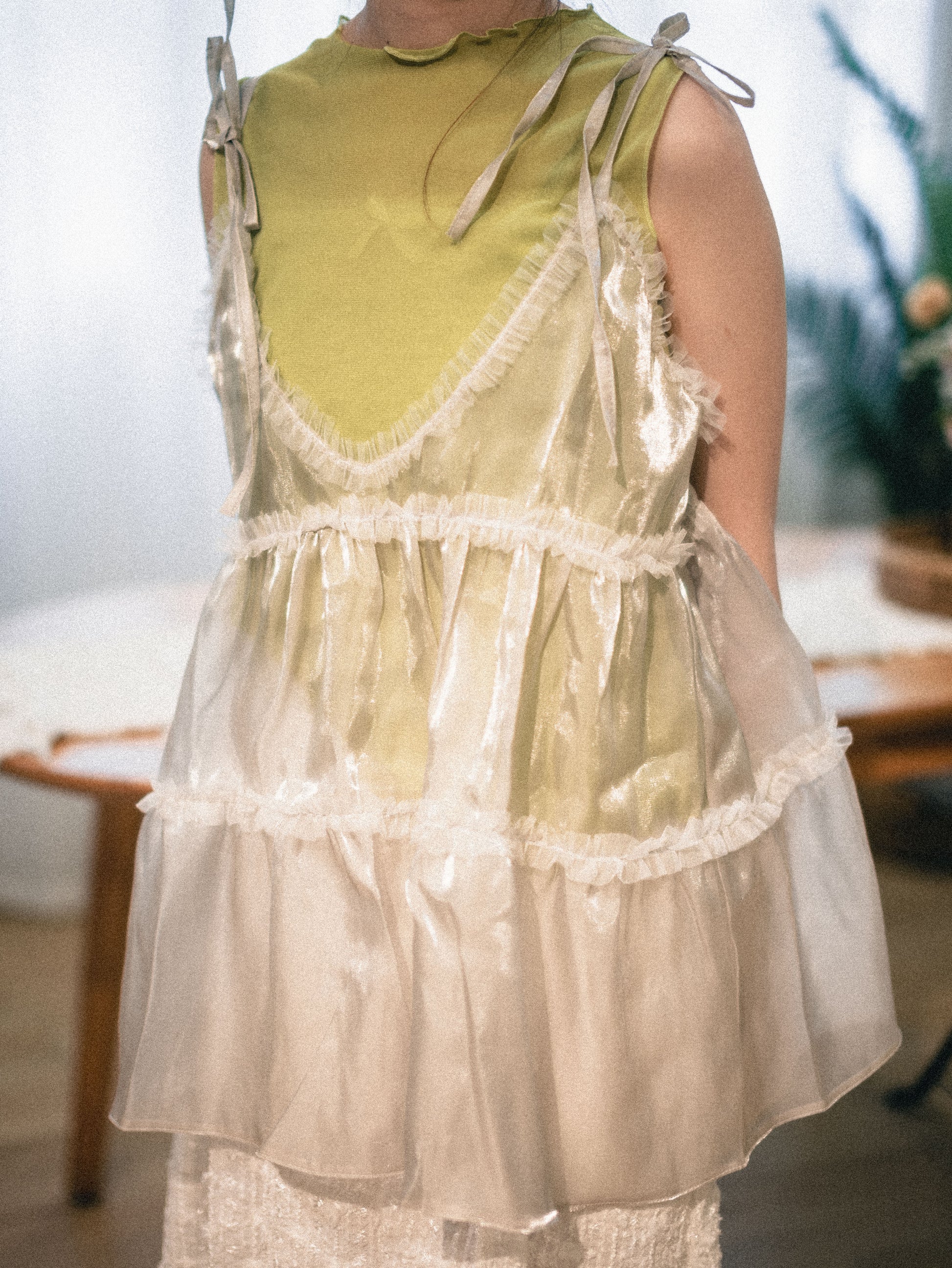 領位同層次位都用咗閃閃紗做ruffle邊🥹
