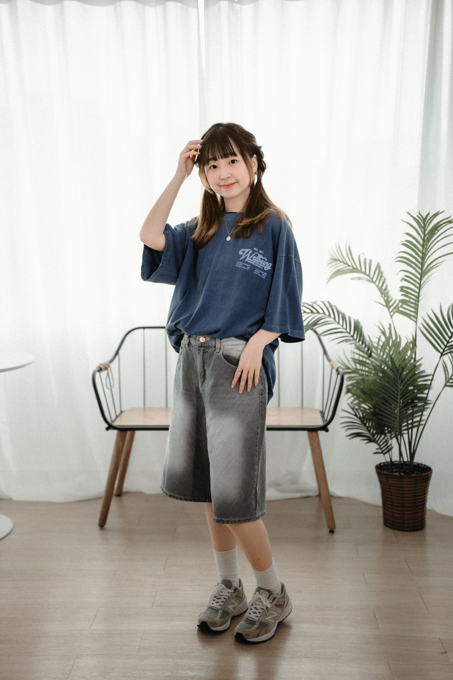 Brush Washed Wide Fit Denim Half Pants | 1 color
