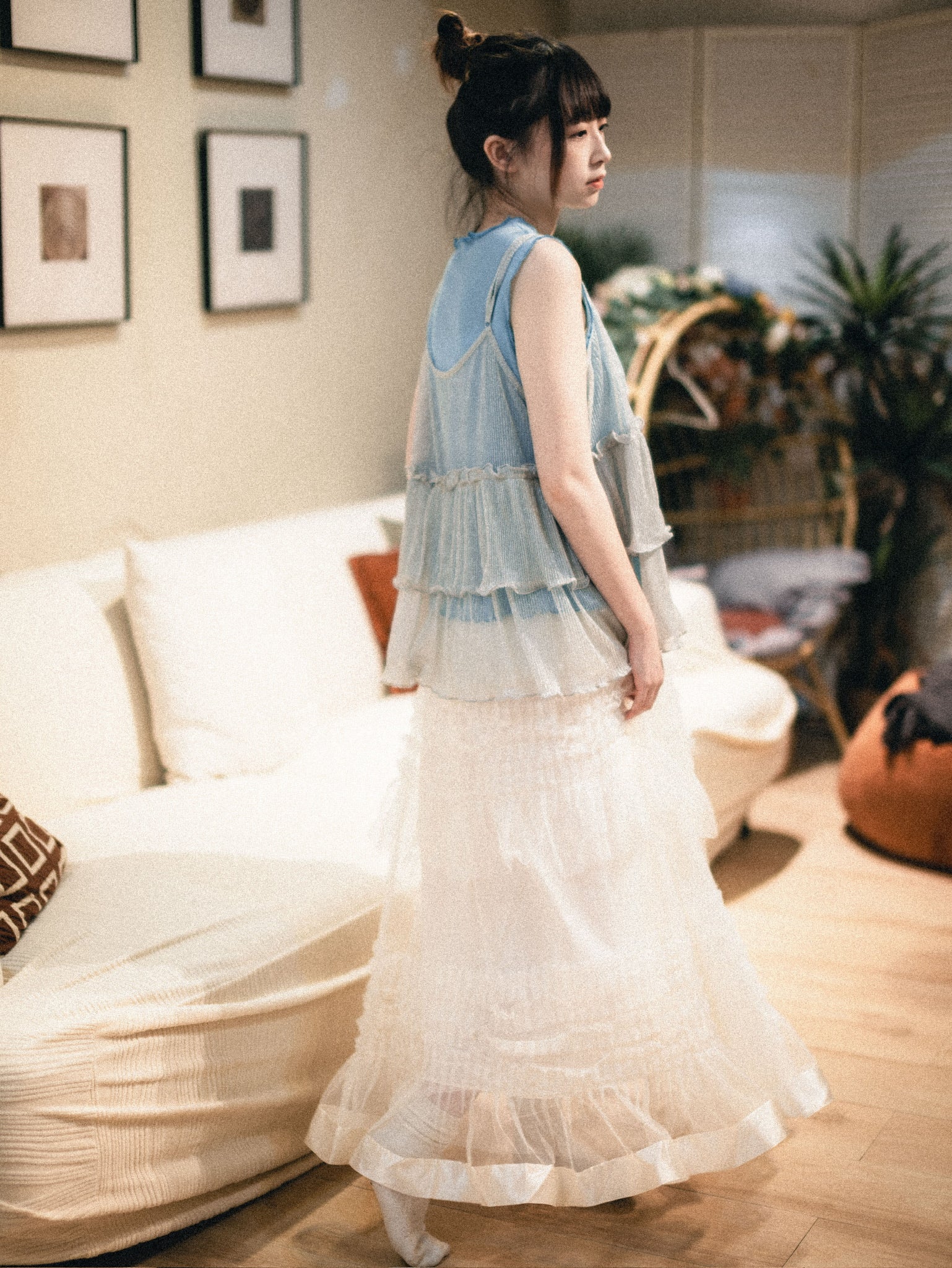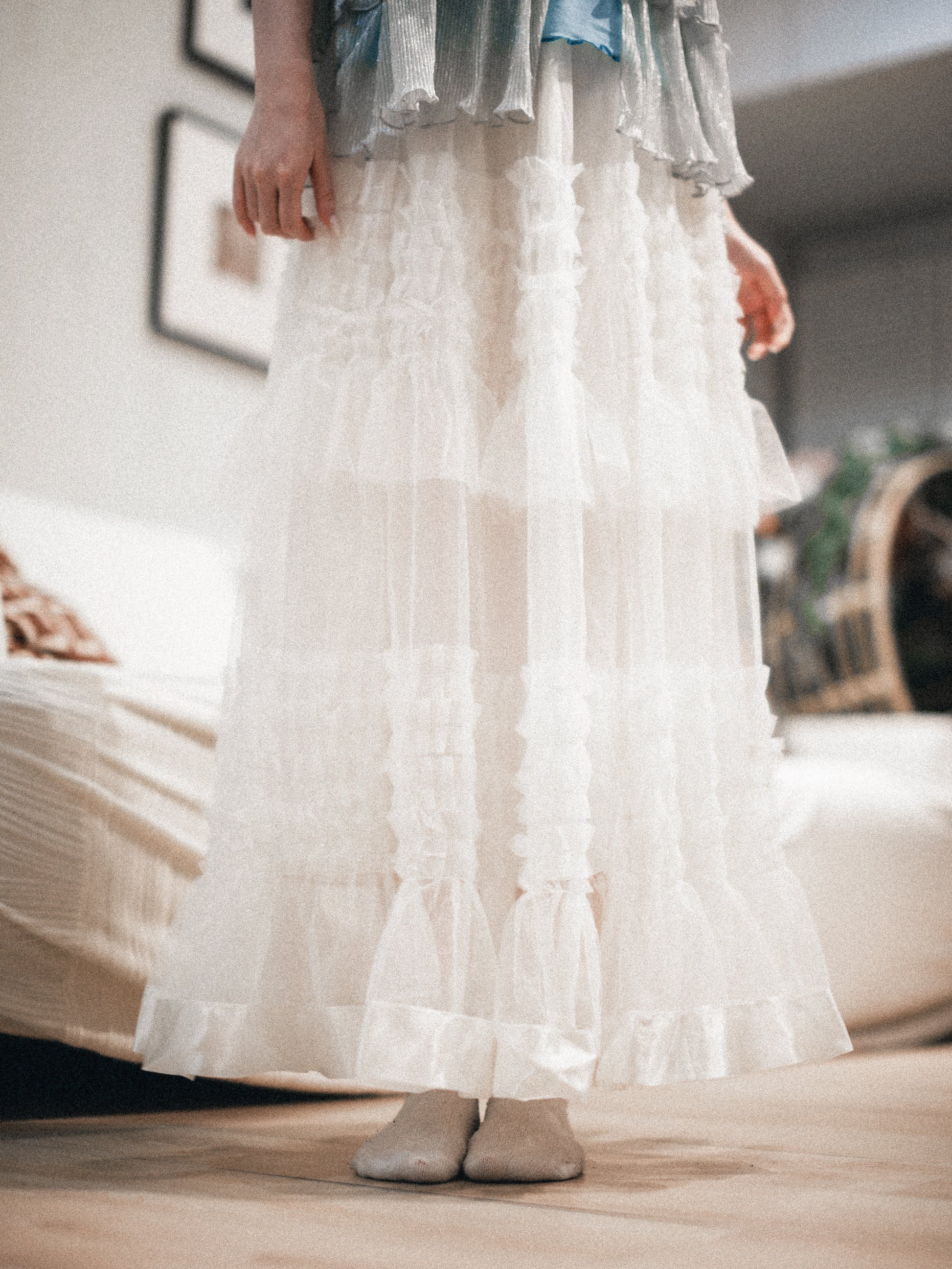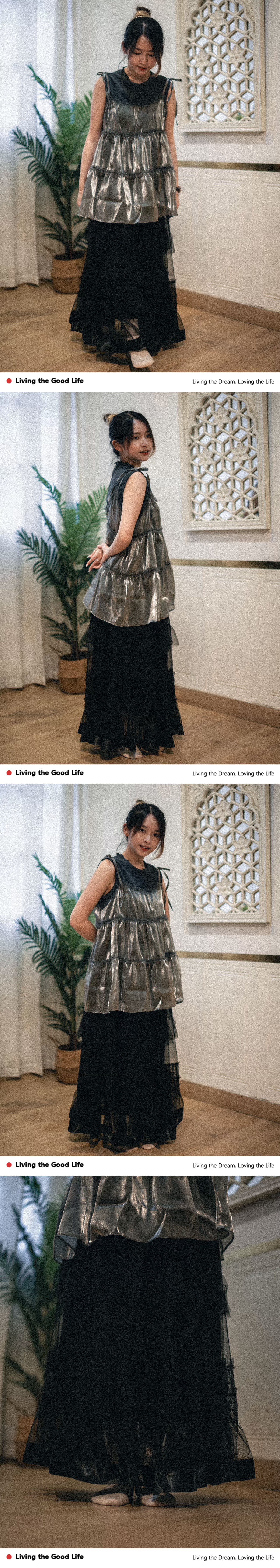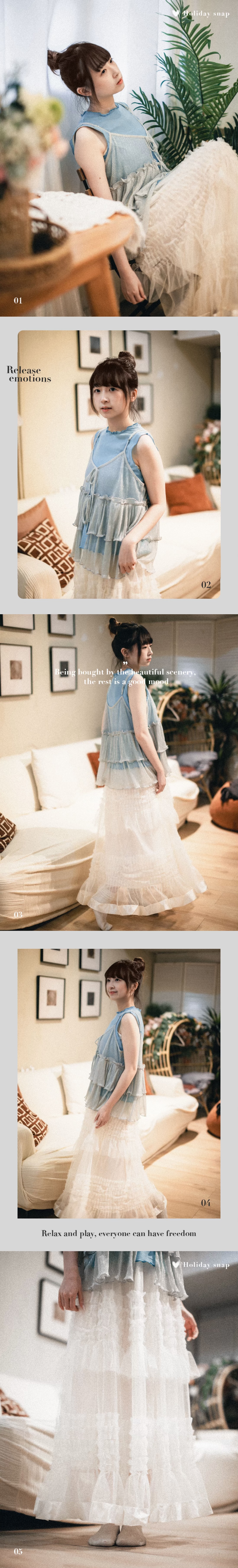 特別!公主風緞帶邊多層紗紗蛋糕長裙|3色入