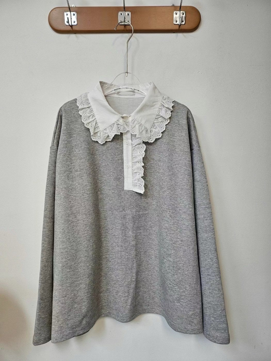 通花娃娃領 ❁ 薄長袖上衣|2色入