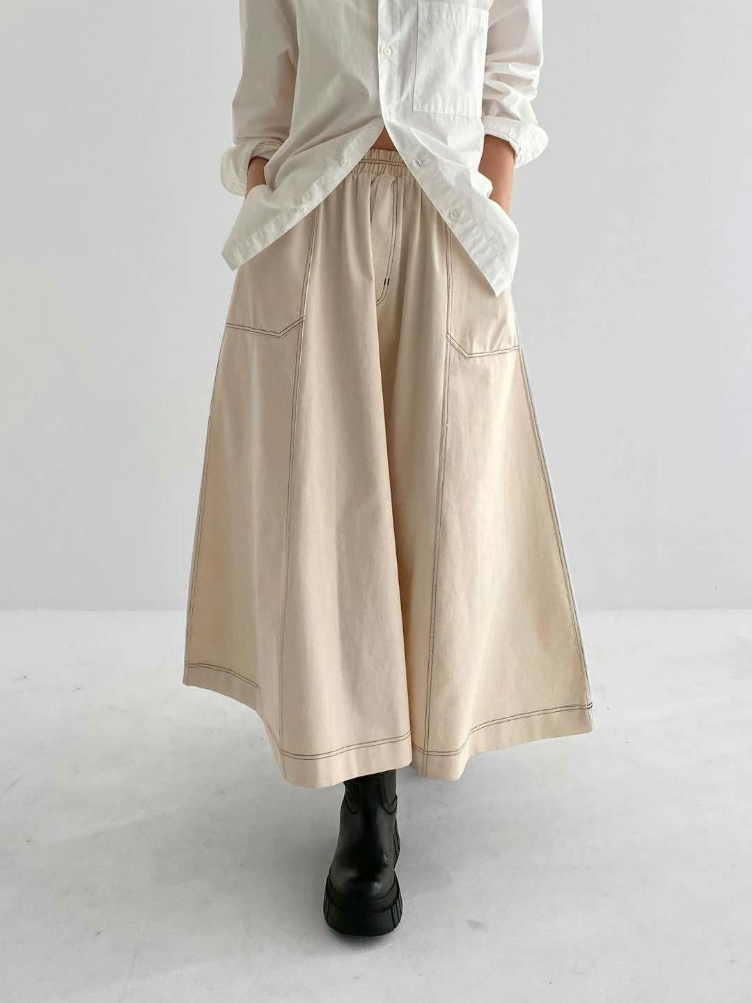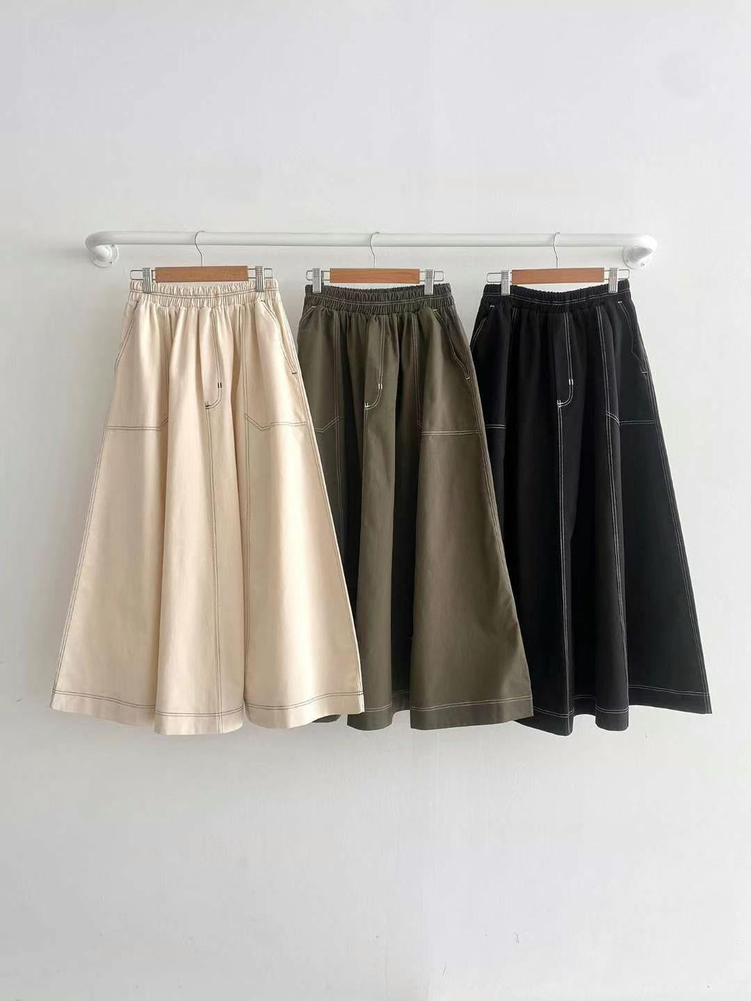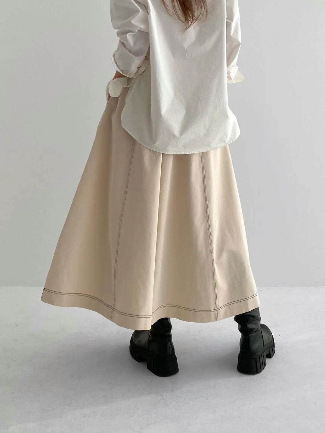 顯瘦裙形!橡筋頭明線A字裙|3色入