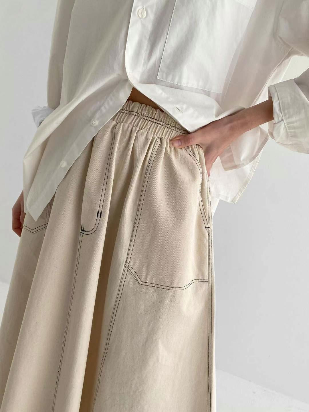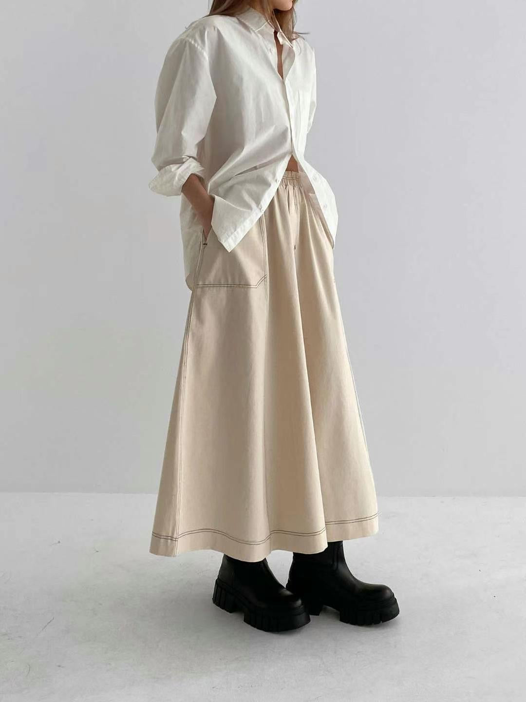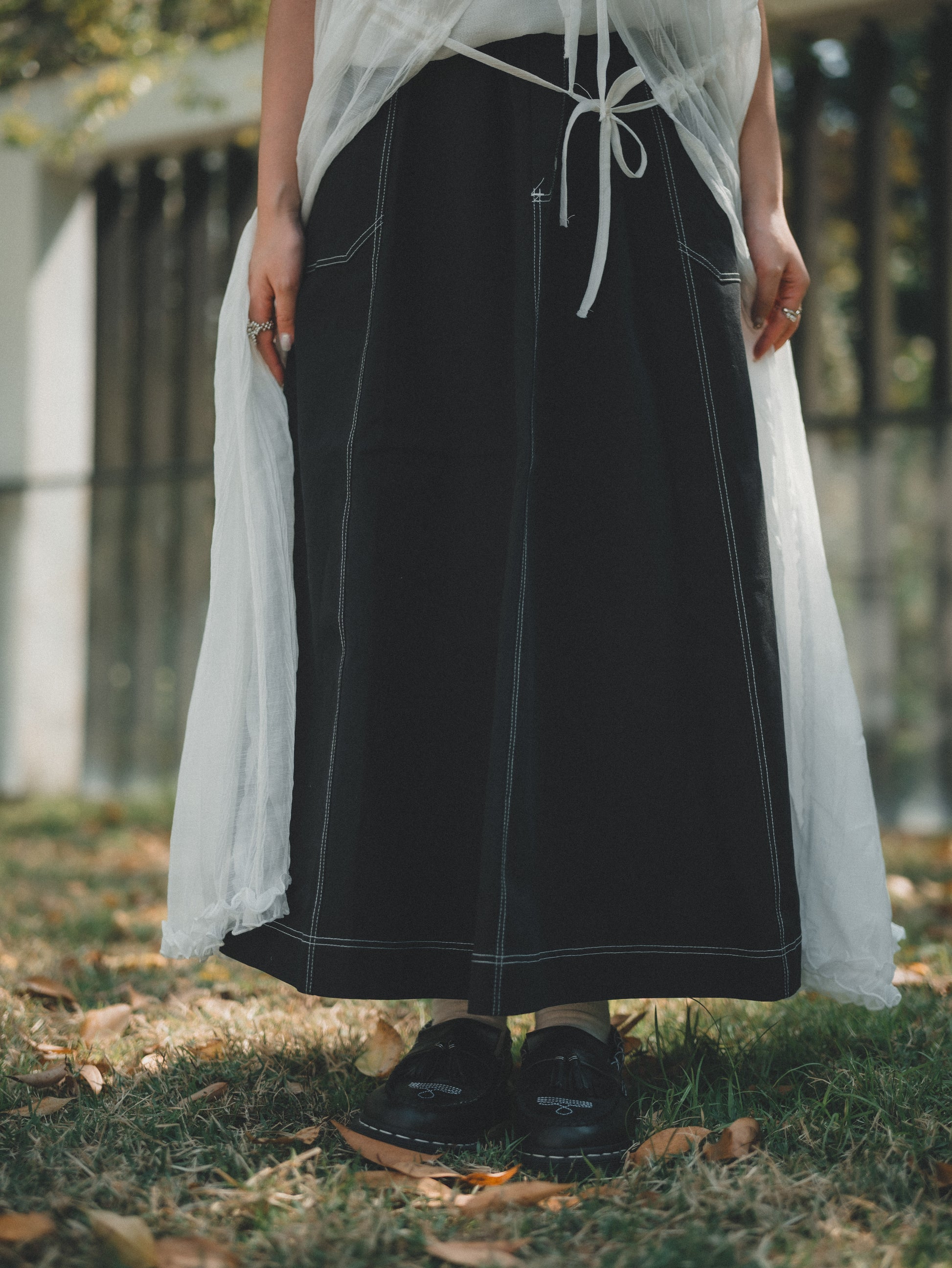 顯瘦裙形!橡筋頭明線A字裙|3色入