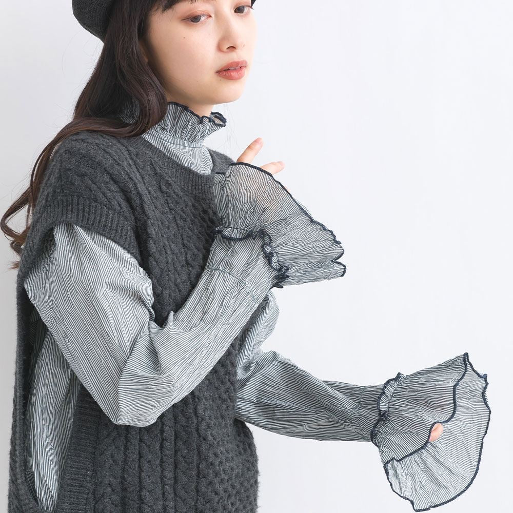 露出喇叭荷葉形 領口和袖口〰️