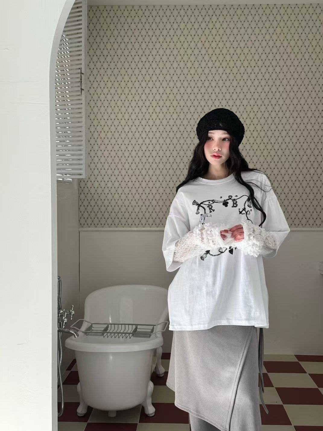 ROMANTIC RUFFLE LACE SLEEVES TEE | 3色入