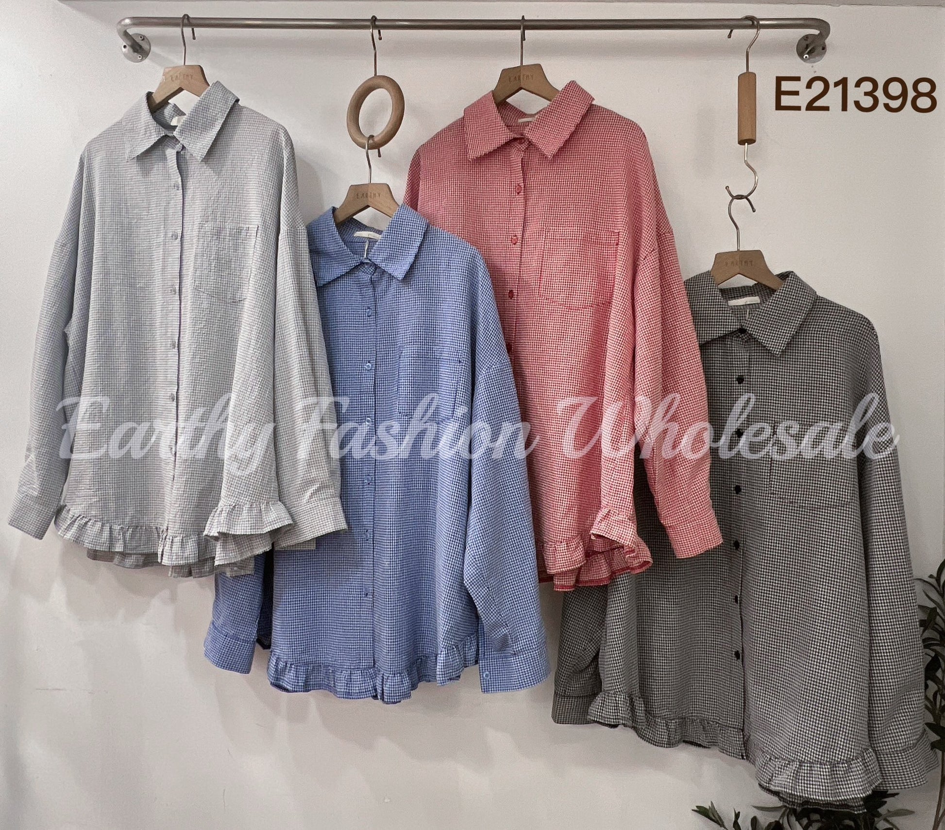 RUFFLE下襬➿小格子襯衫|4色入